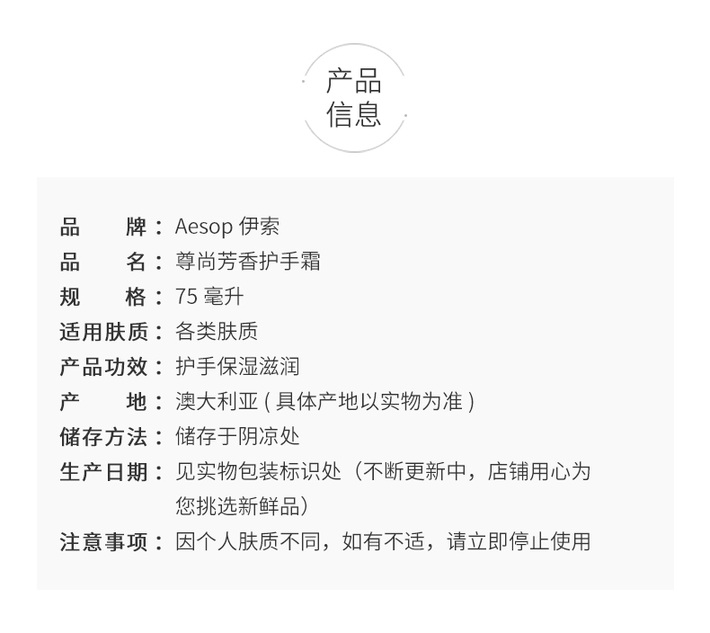 【保税仓】Aesop 伊索尊尚芳香润手霜 75ml 蓝色赋活芬芳