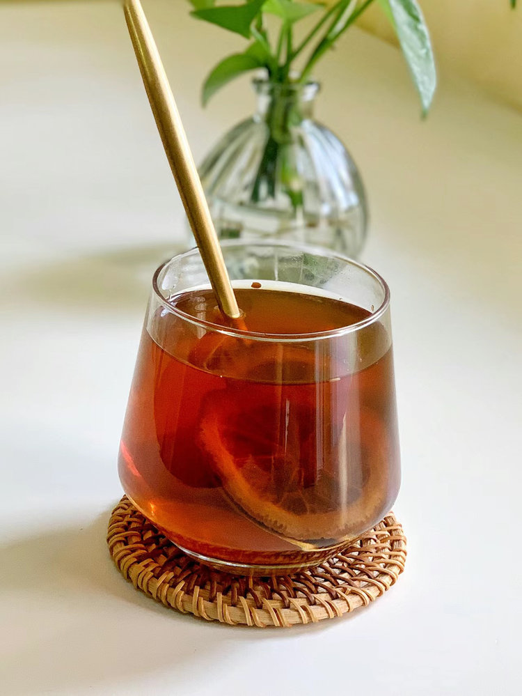 抿一口,柠檬的清香和陈皮的悠香在嘴里绽放,