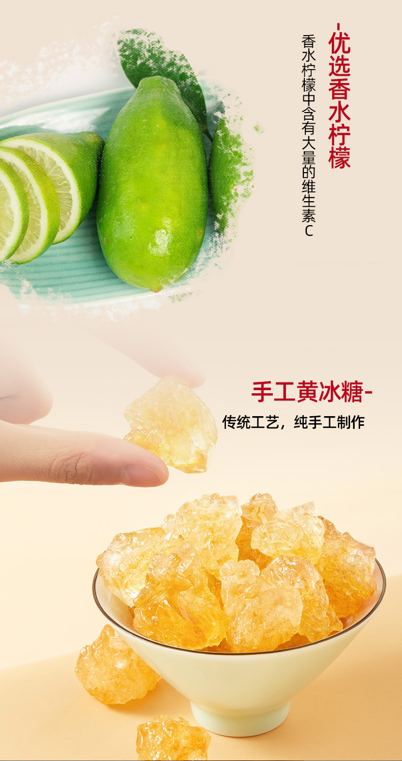 冰糖的清甜结合香水柠檬微微的酸味和陈皮的醇厚
