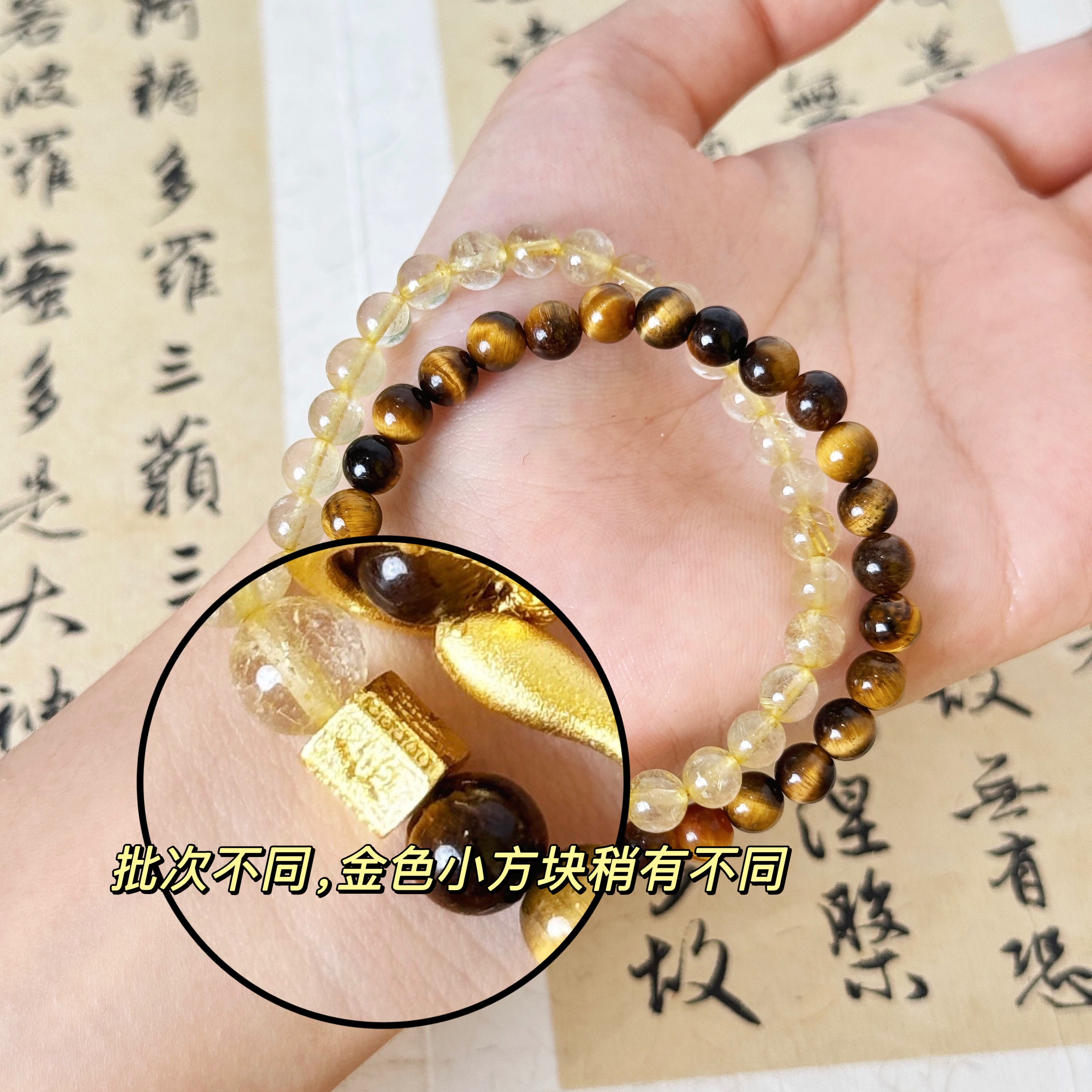 【品名】敦煌鱼跃·虎眼石金发晶双圈手串