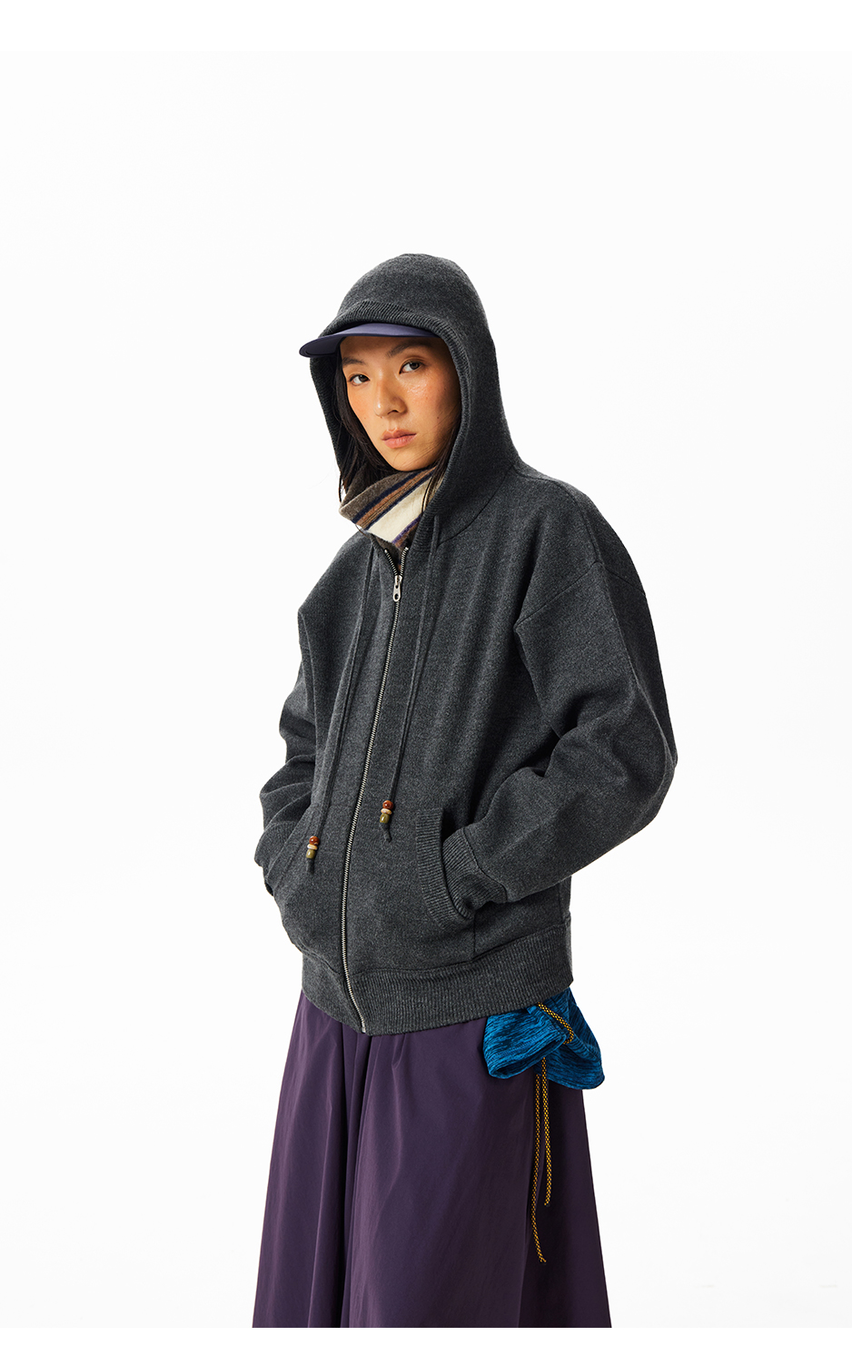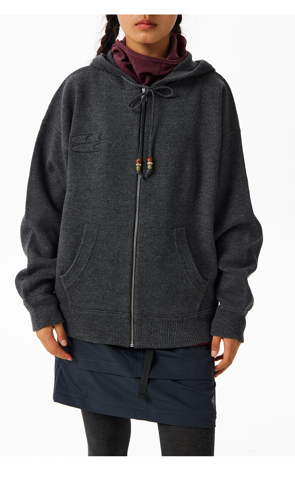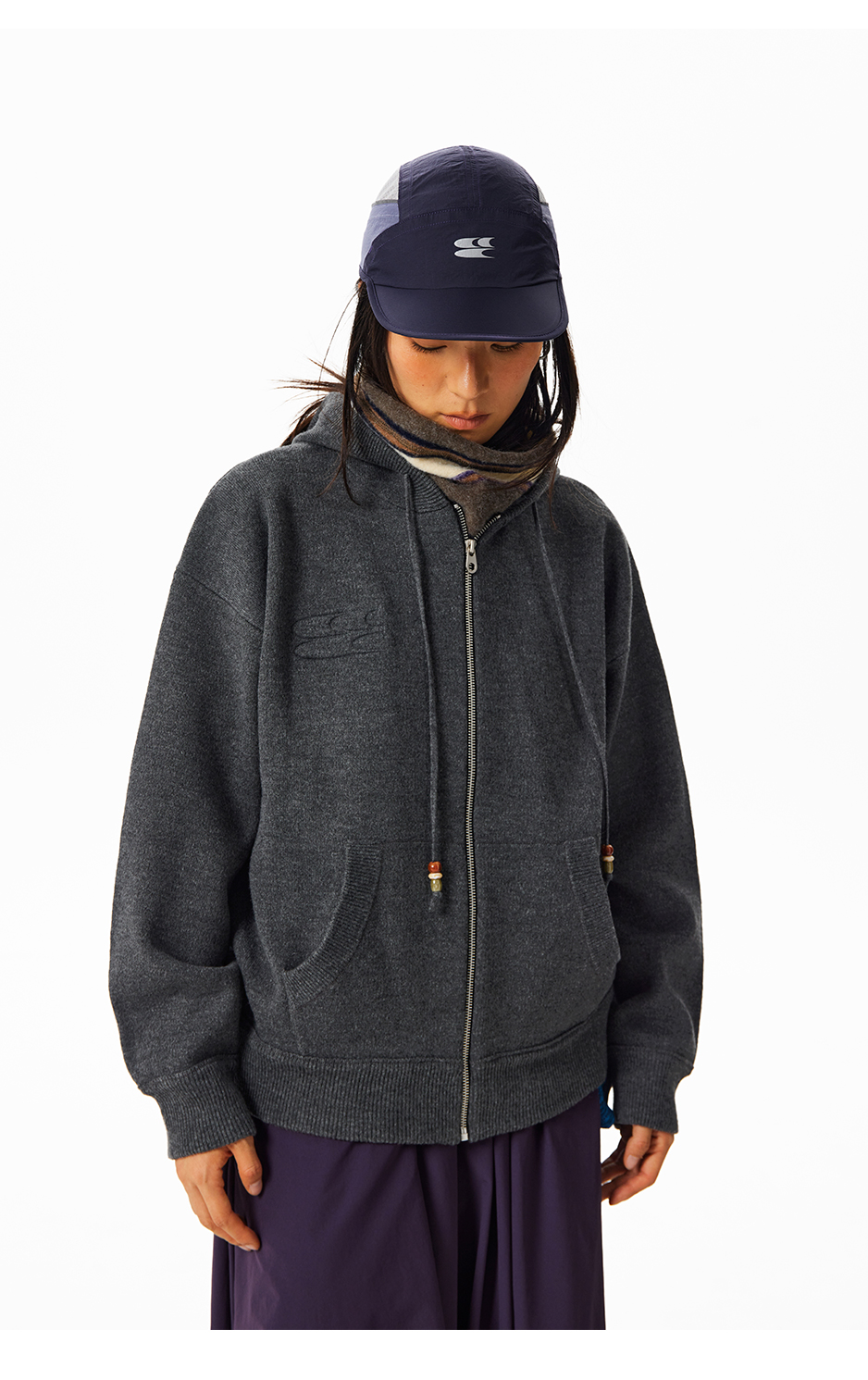 CryingCenter钢印logo连帽开衫针织毛衣外套秋冬复古叠穿男女款
