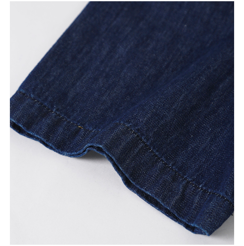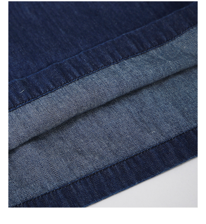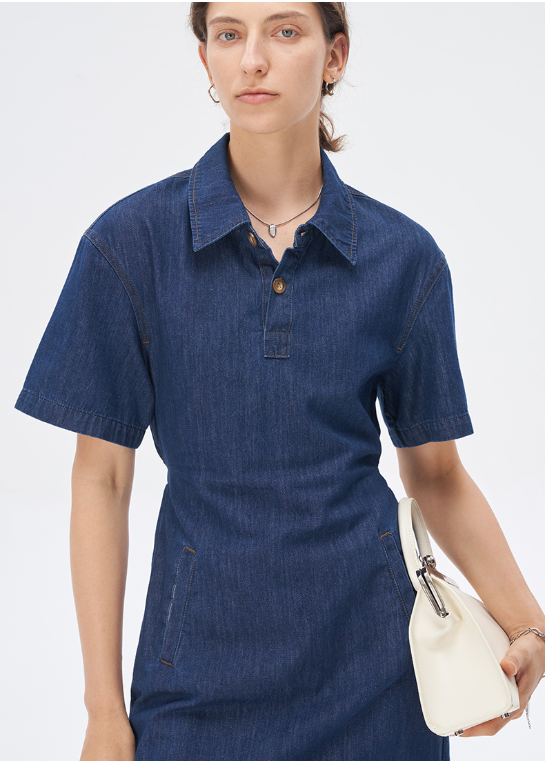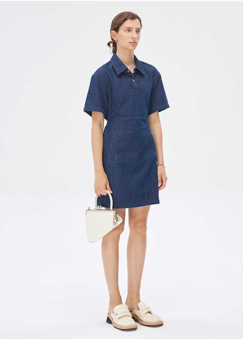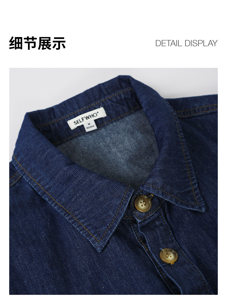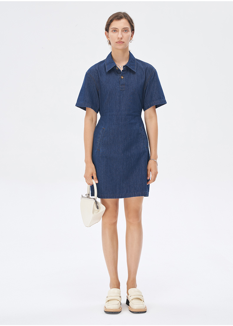 Self Who深海蓝纯棉牛仔连衣裙2023新款夏高级感落肩袖小个子裙子