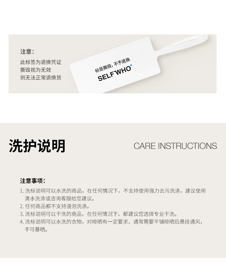 - SELFWHO——将街头文化融入高级成衣,以服装为载体,用廓形、解构设计和艺术意象探寻极致的生活方式。特立独行,知行合一,TO BE YOURSELF。
