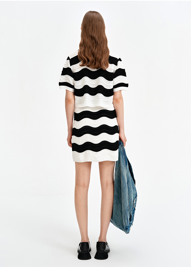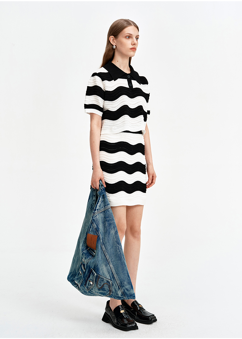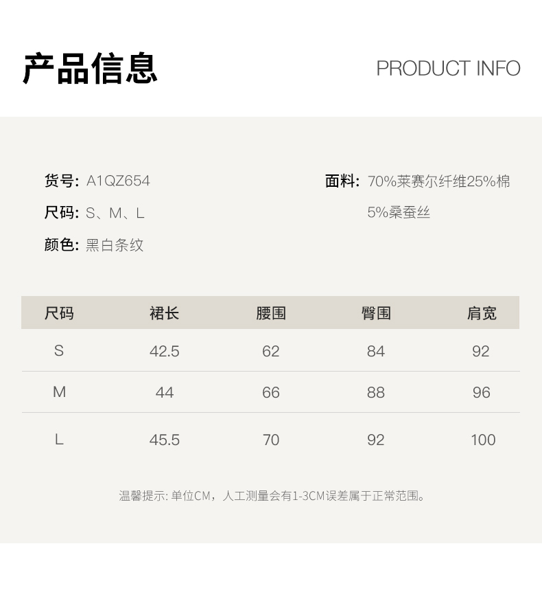 SELFWHO莱赛尔桑蚕丝混纺黑白条纹半身裙女包臀a字裙子