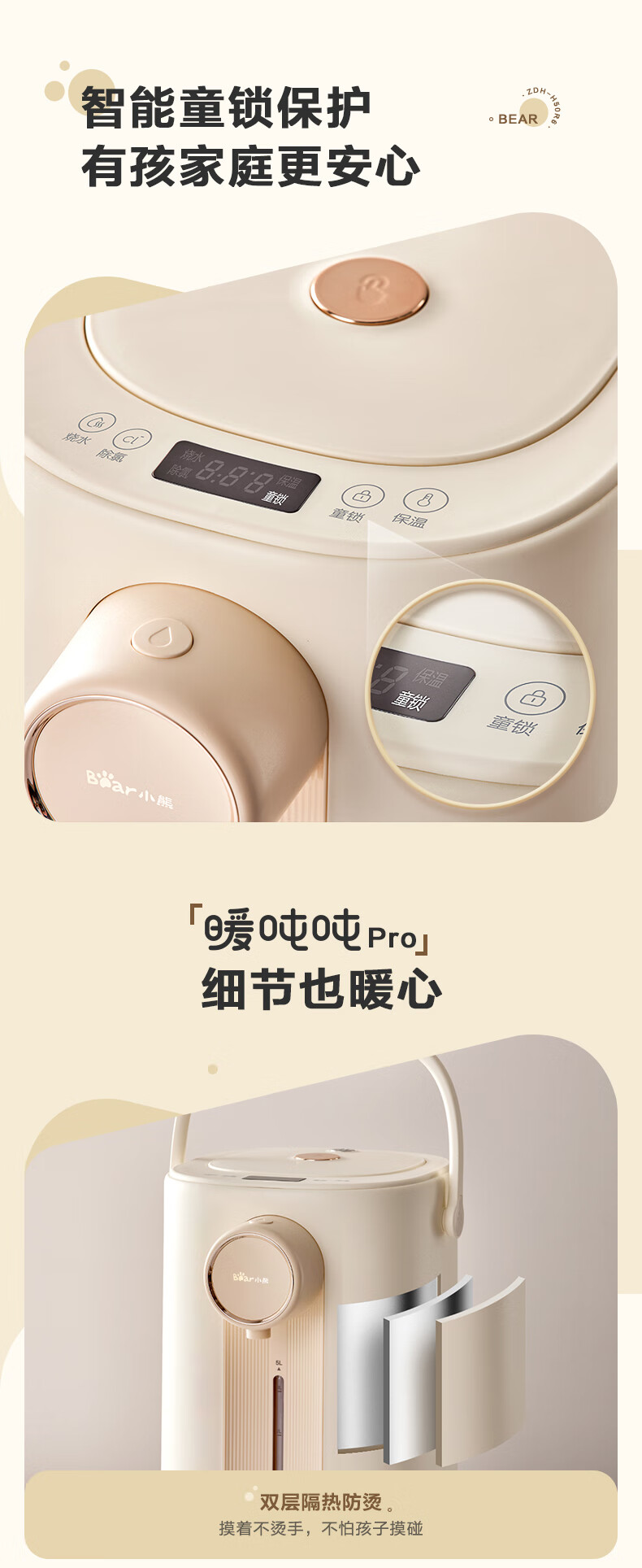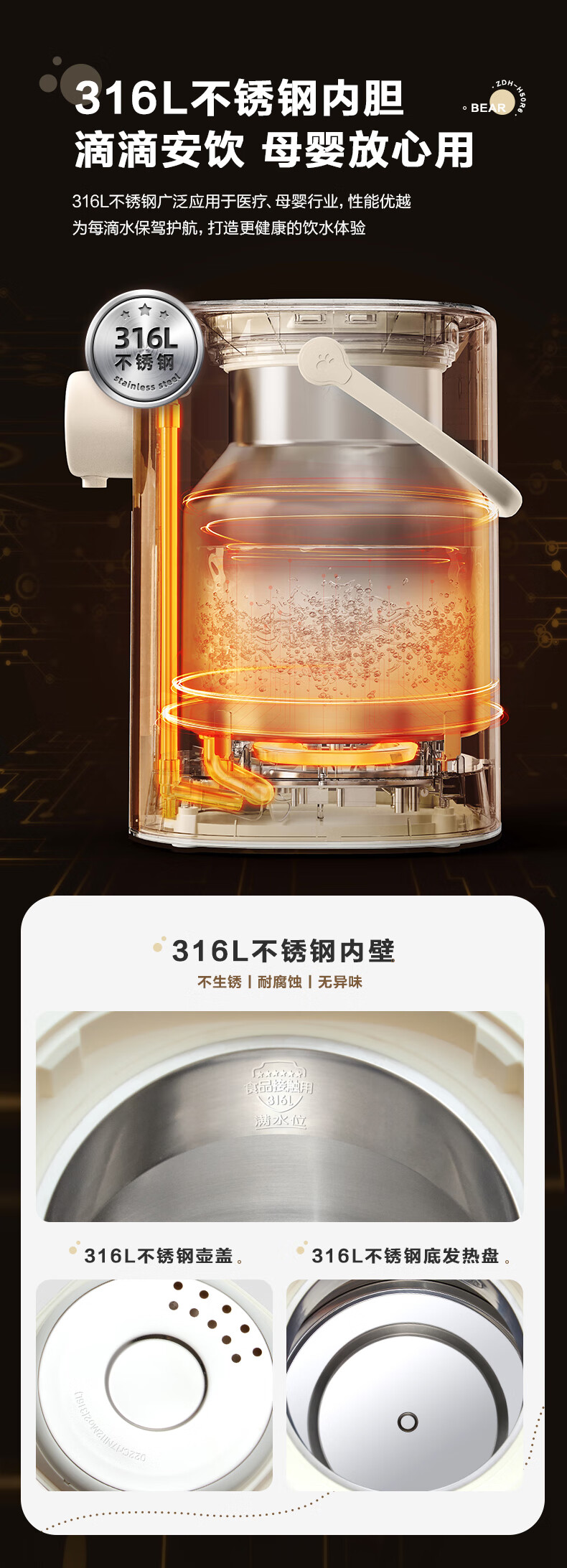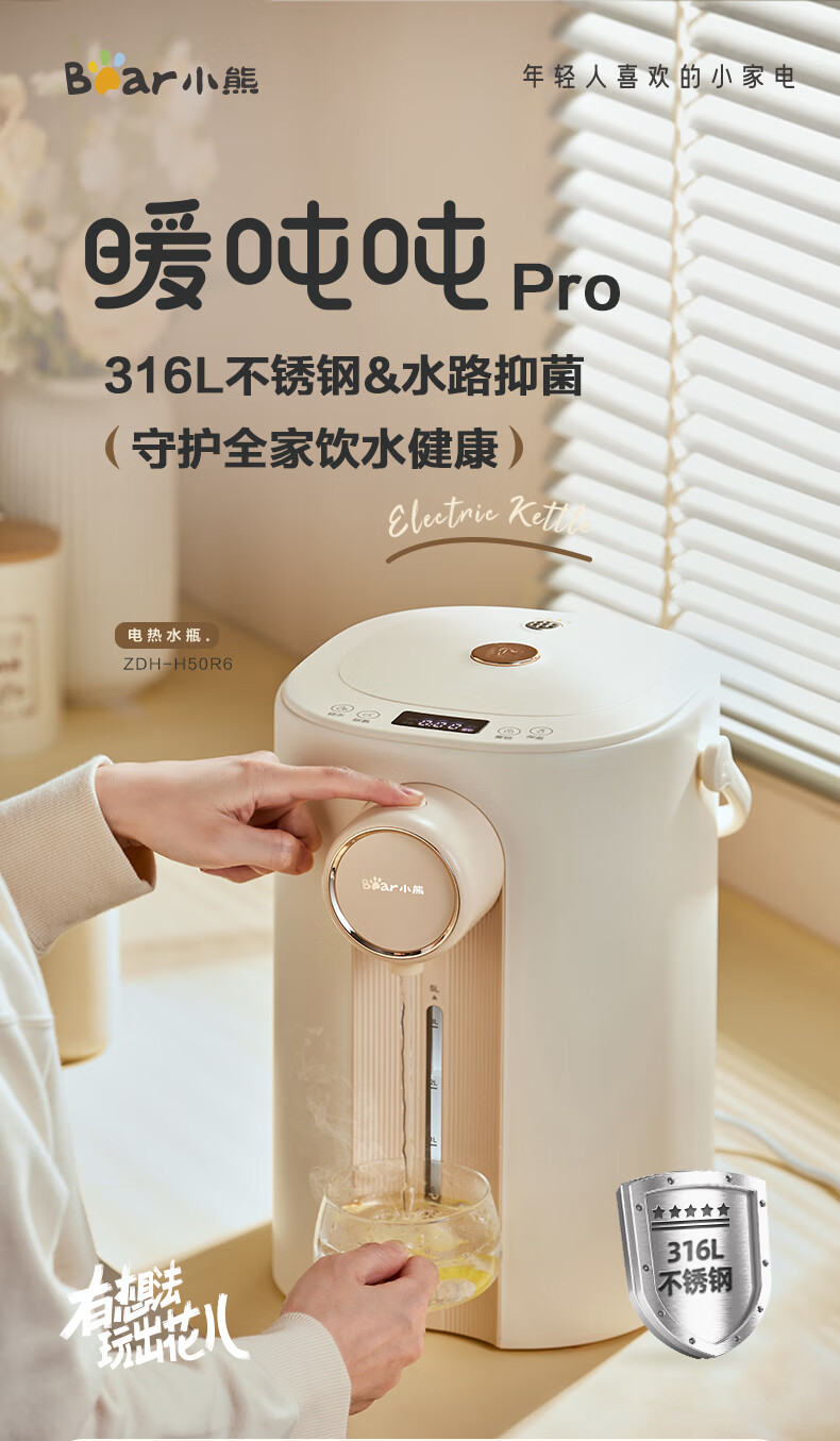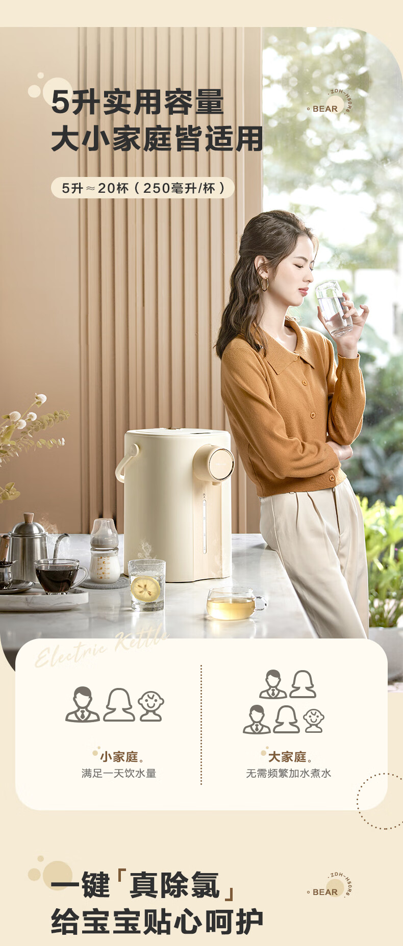 积分免费兑:小熊(Bear)恒温水壶 电热水瓶5L防烫除氯电水瓶316L不锈钢电热水壶烧水壶 多段保温恒温电水壶 ZDH-H50R6