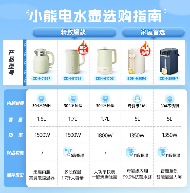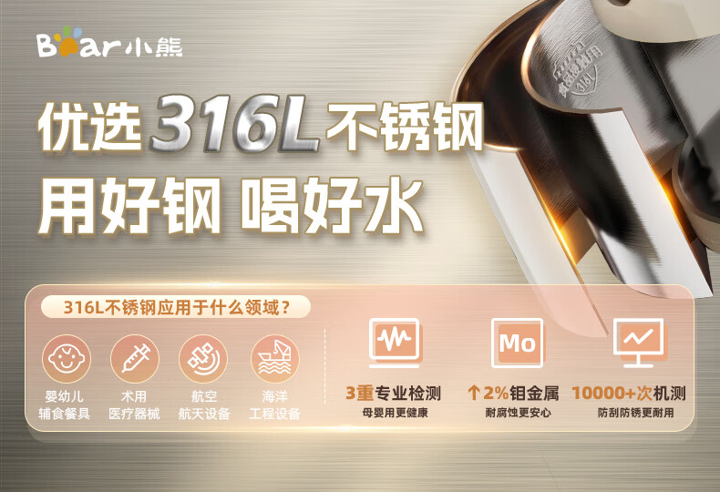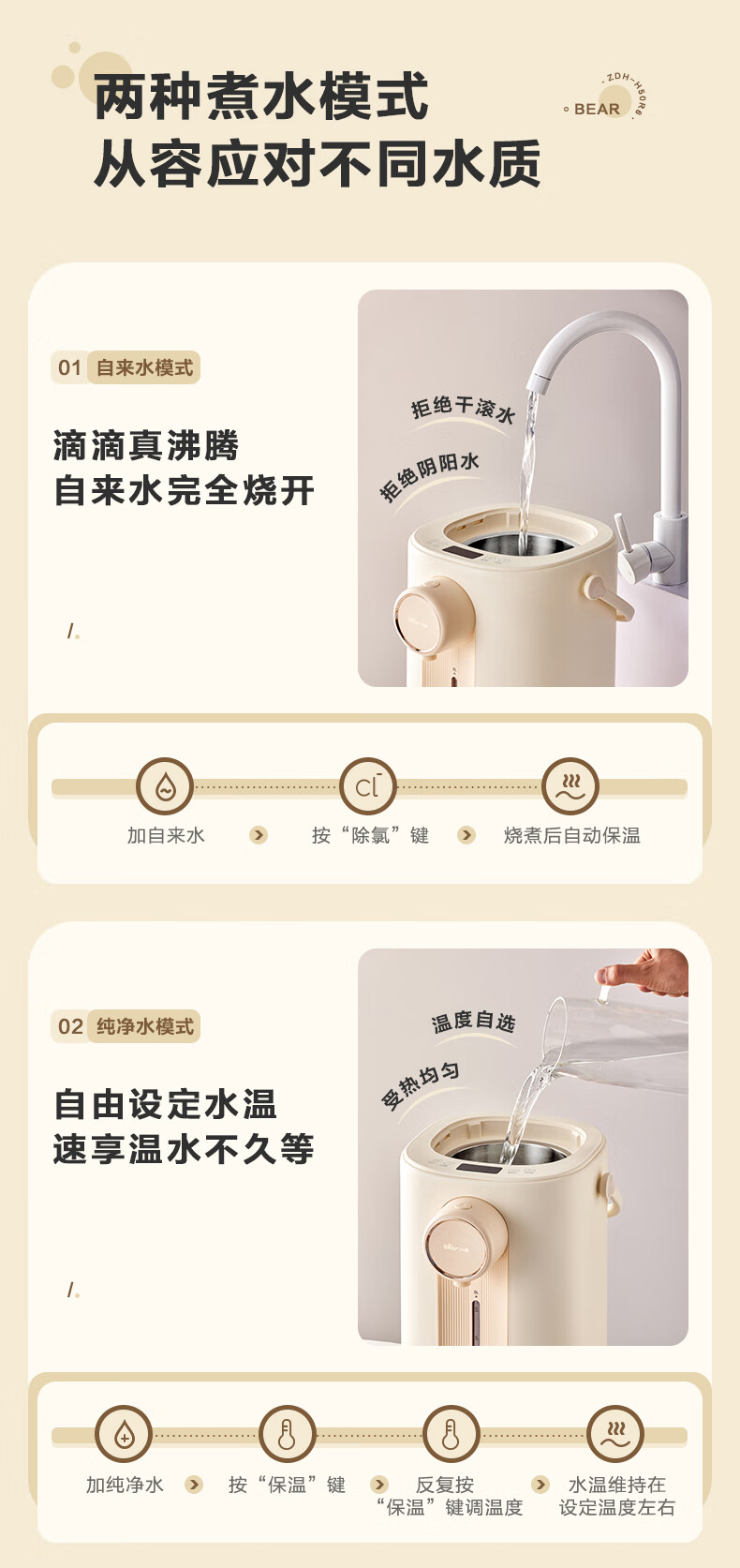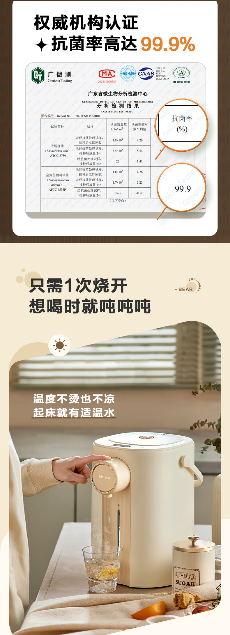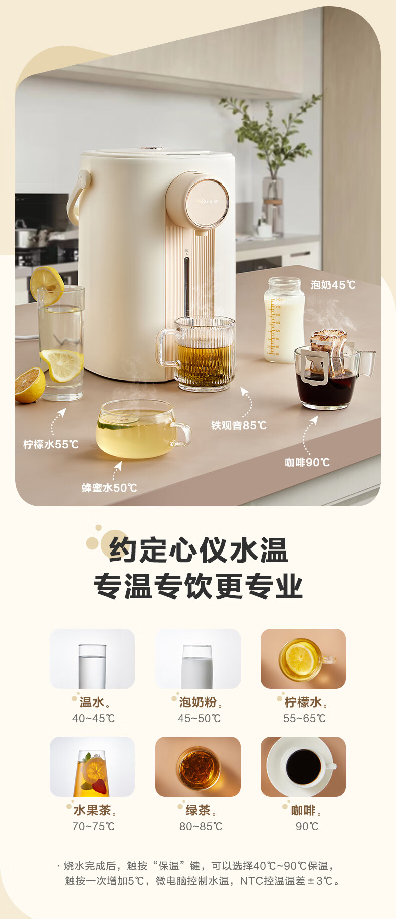 积分免费兑:小熊(Bear)恒温水壶 电热水瓶5L防烫除氯电水瓶316L不锈钢电热水壶烧水壶 多段保温恒温电水壶 ZDH-H50R6