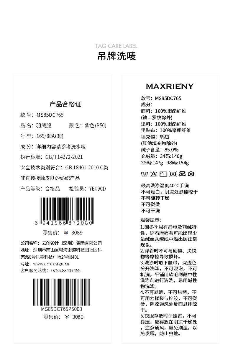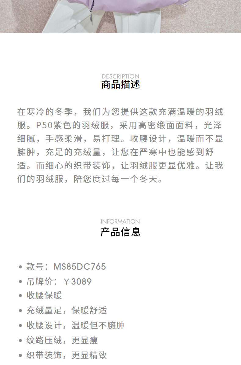 玛克门店发货:MAXRIENY精致优雅羽绒服(货号:MS85DC765)