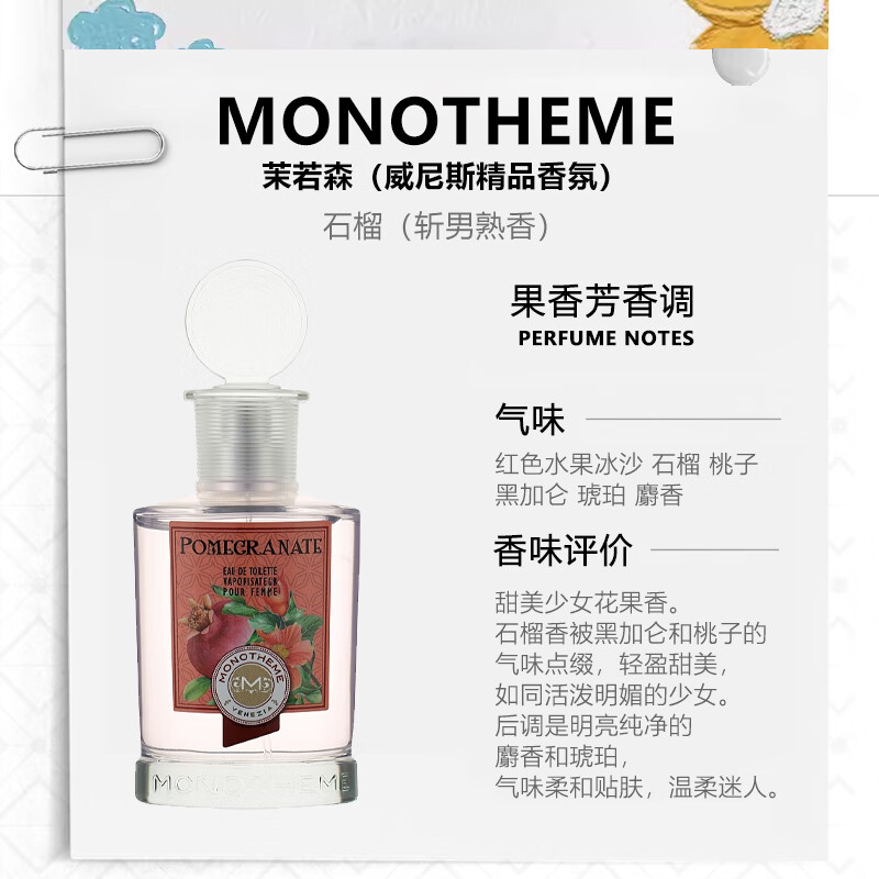 【保税仓】Monotheme威尼斯精品香氛吟游诗人石榴女士淡香水100ml