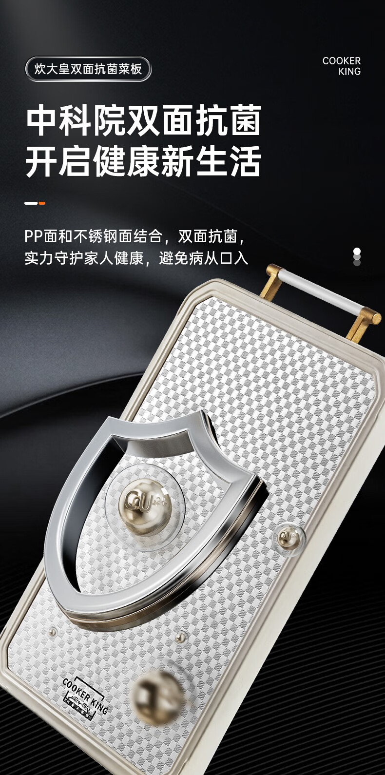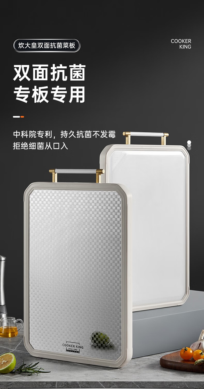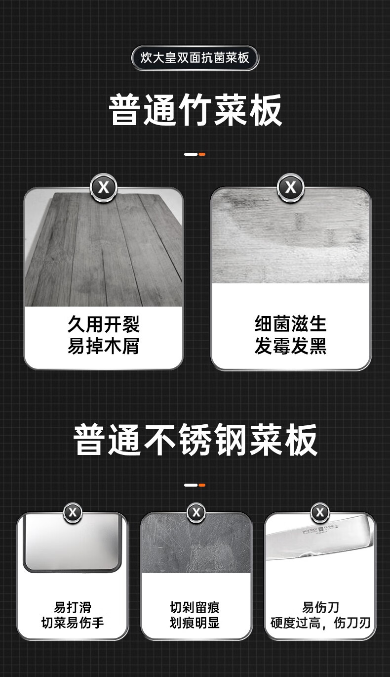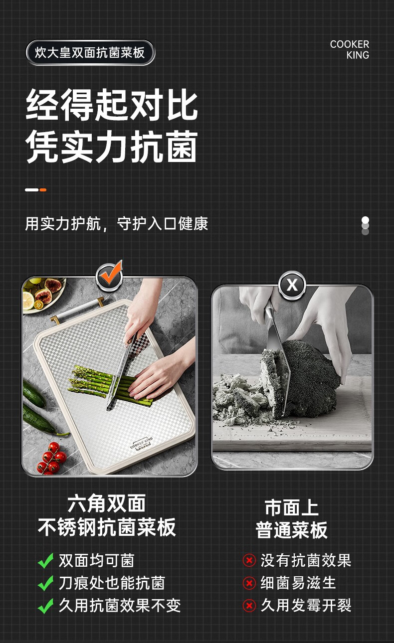 炊大皇 六角双面不锈钢抗菌菜板38*27*2.4cm