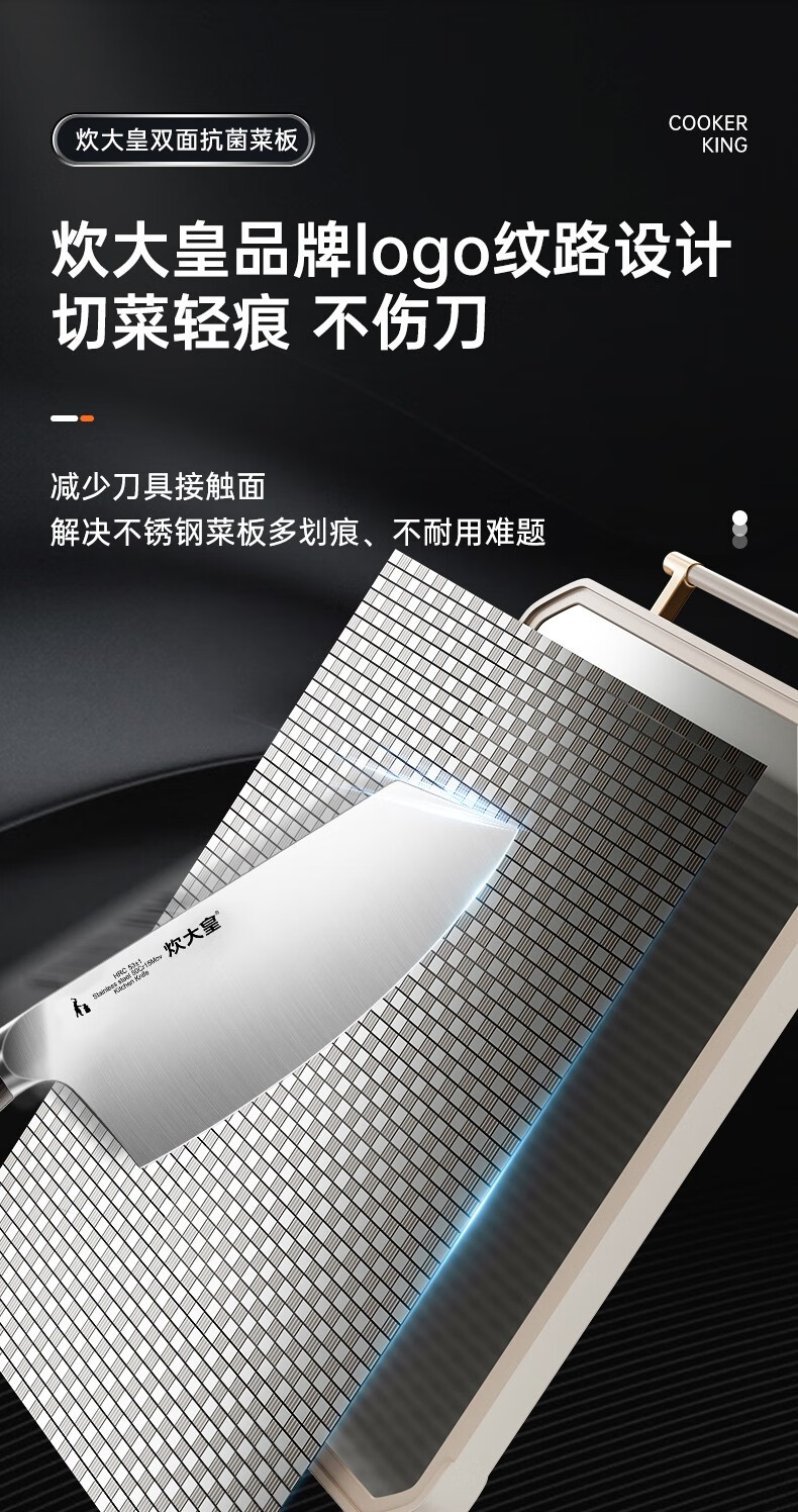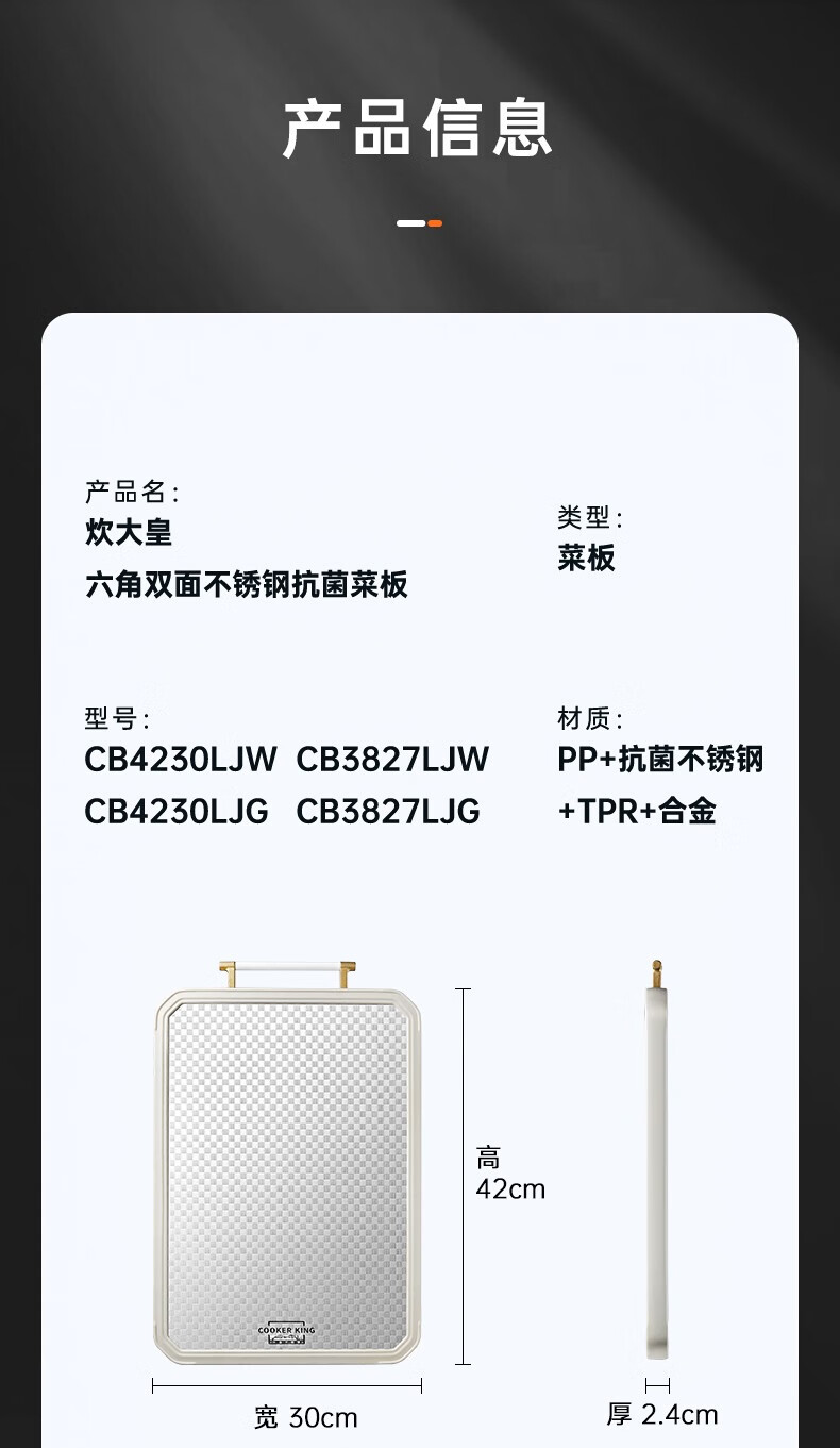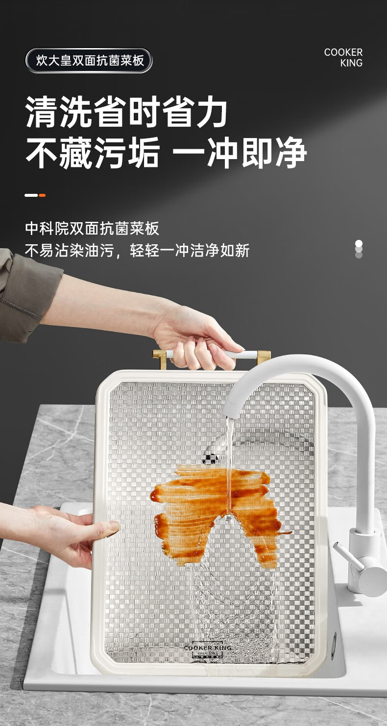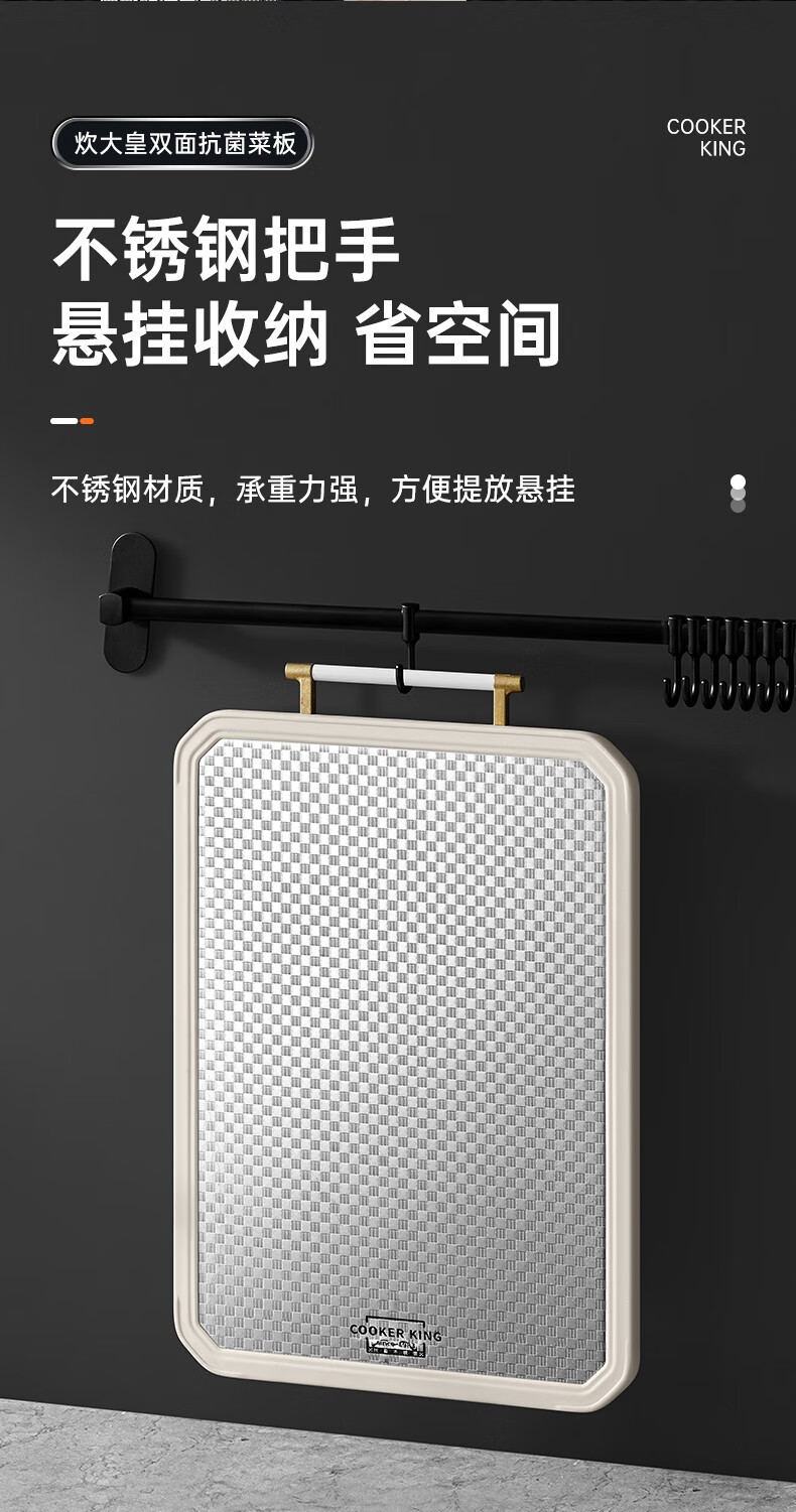 炊大皇 六角双面不锈钢抗菌菜板38*27*2.4cm