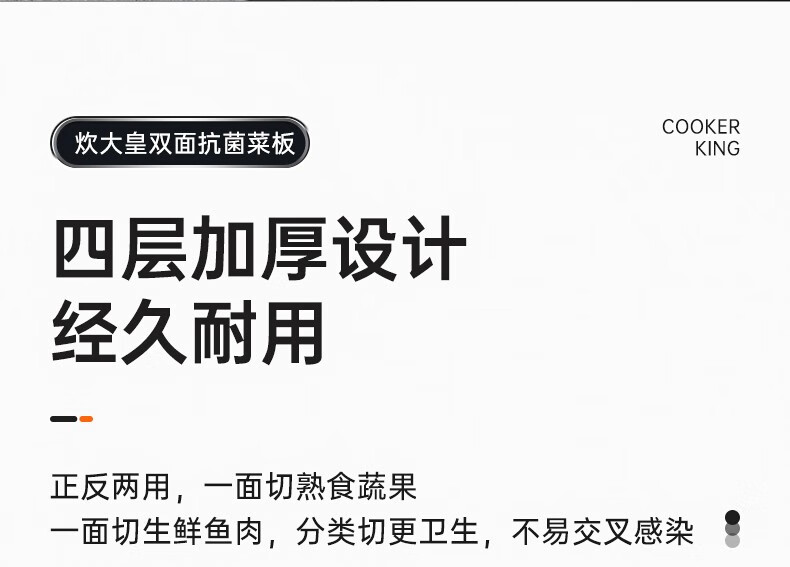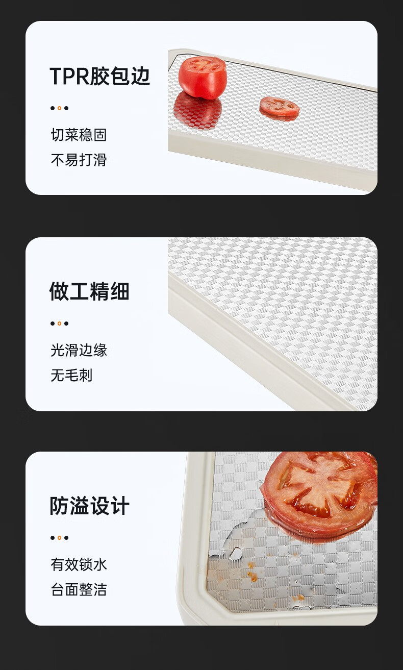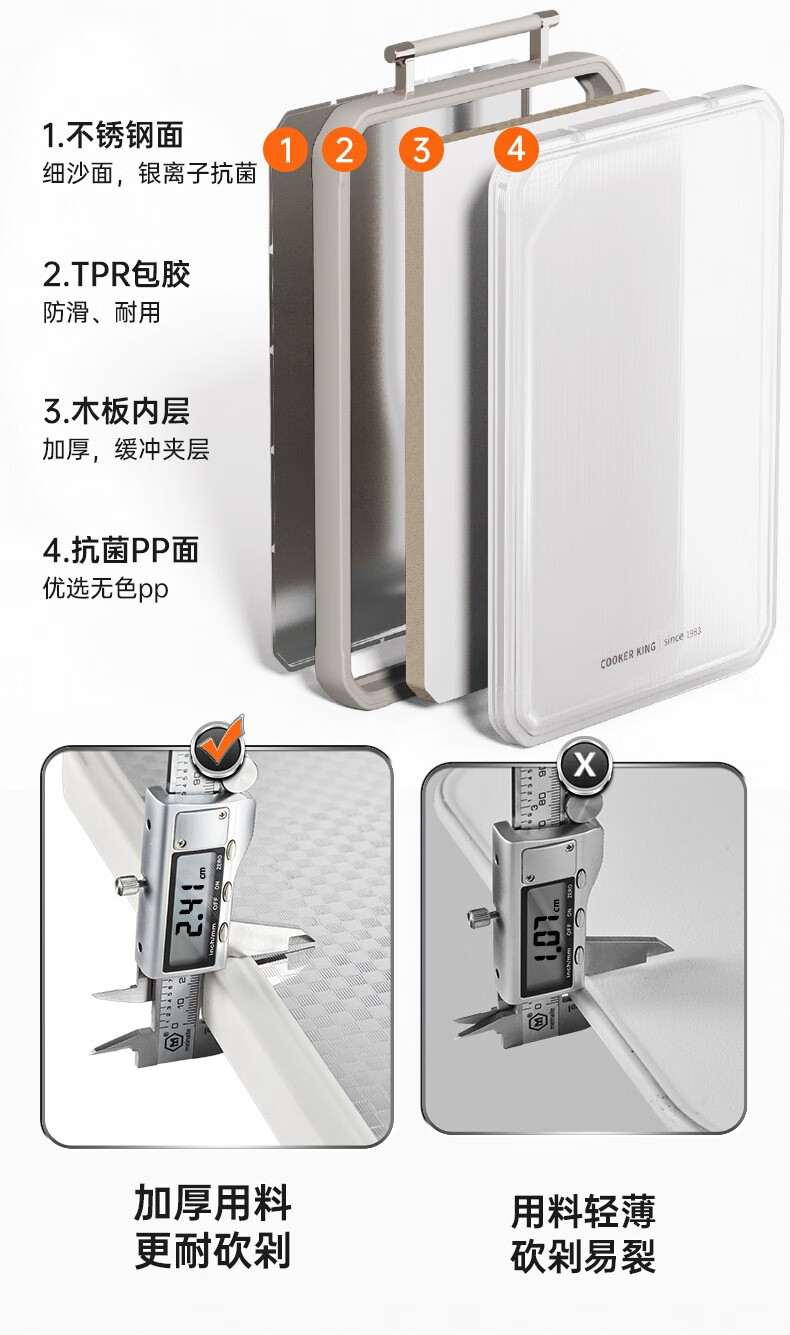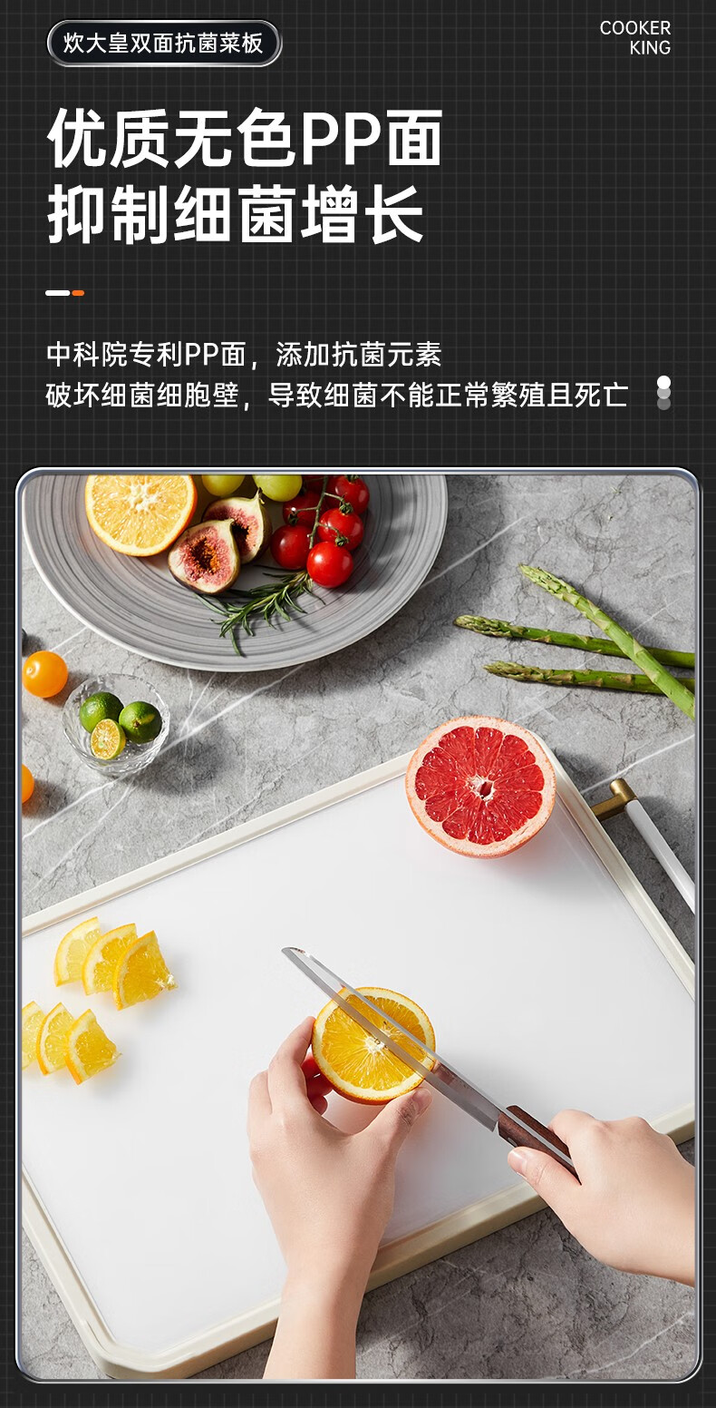 炊大皇 六角双面不锈钢抗菌菜板38*27*2.4cm