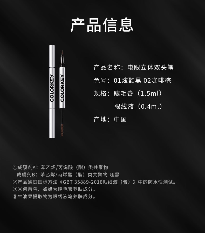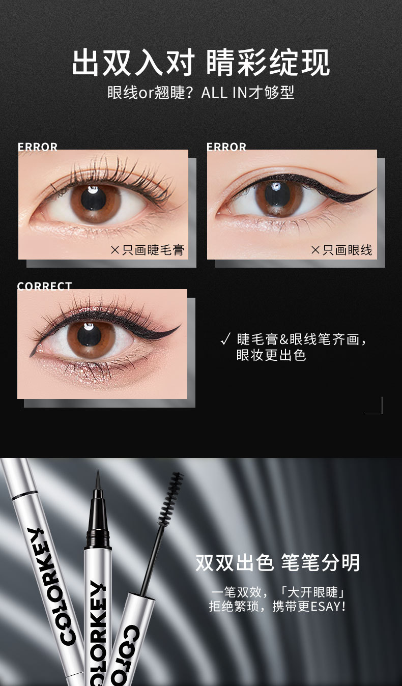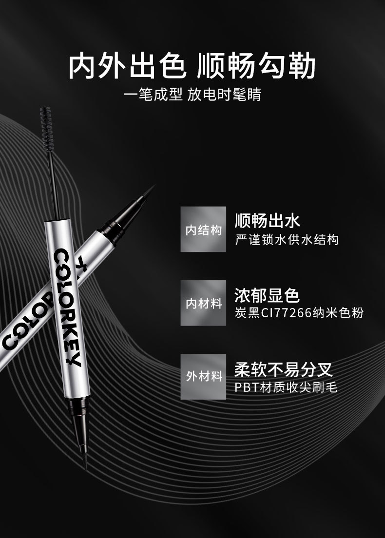 colorkey珂拉琪睫毛膏防水不晕染双用二合一双头笔精细眼线笔 心选到家