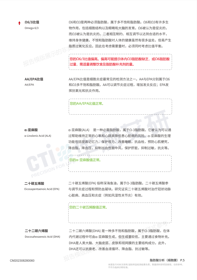 华测 1436脂肪酸分析(细胞膜)(静脉血)