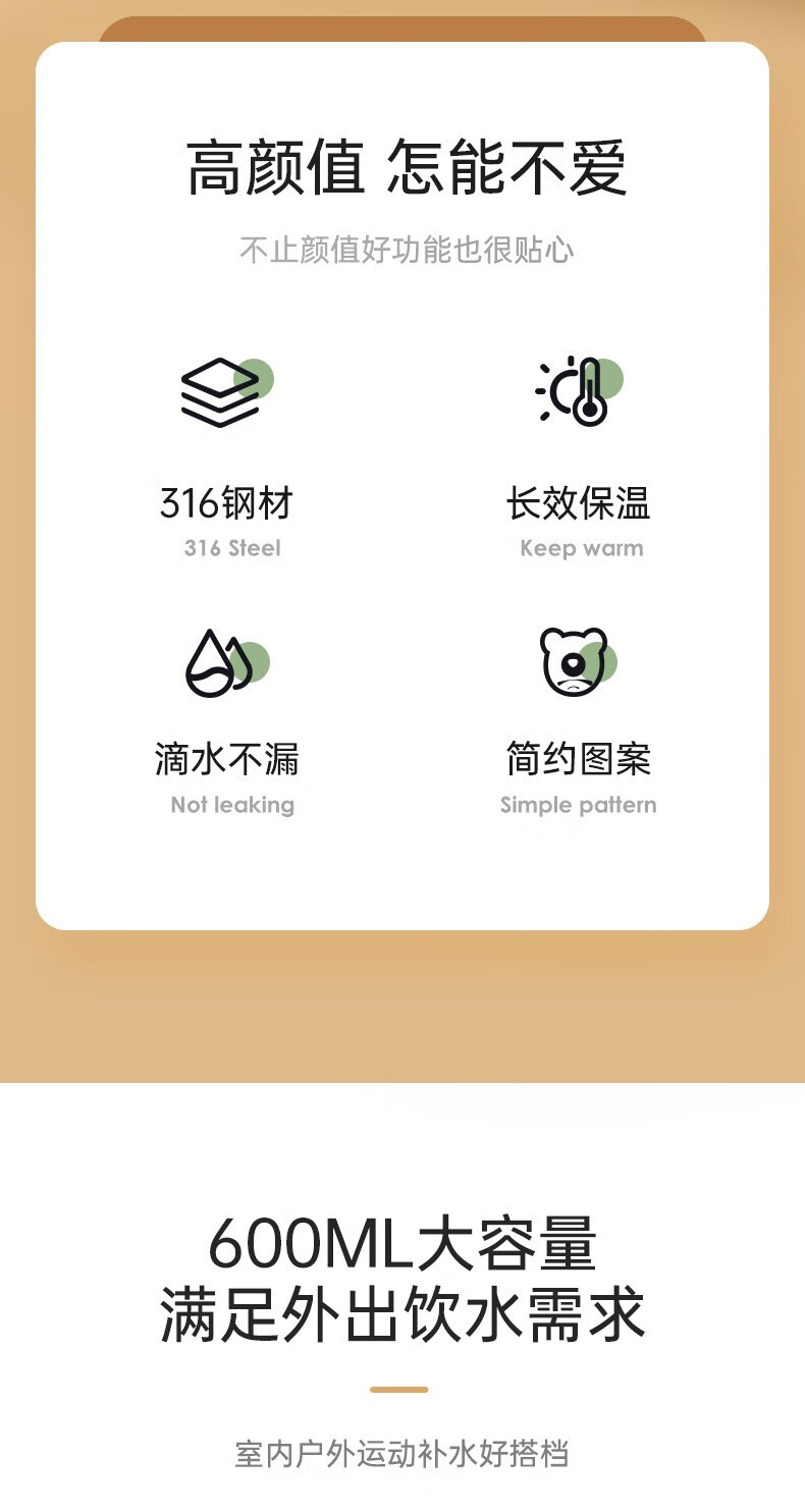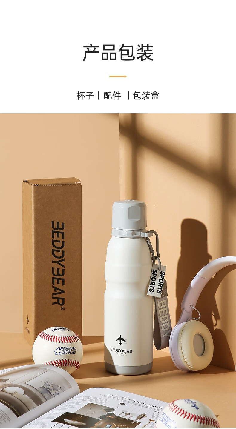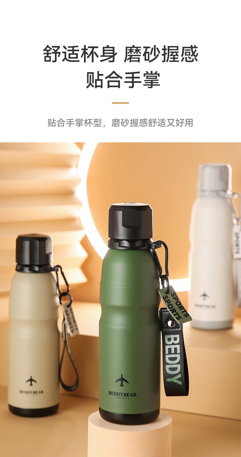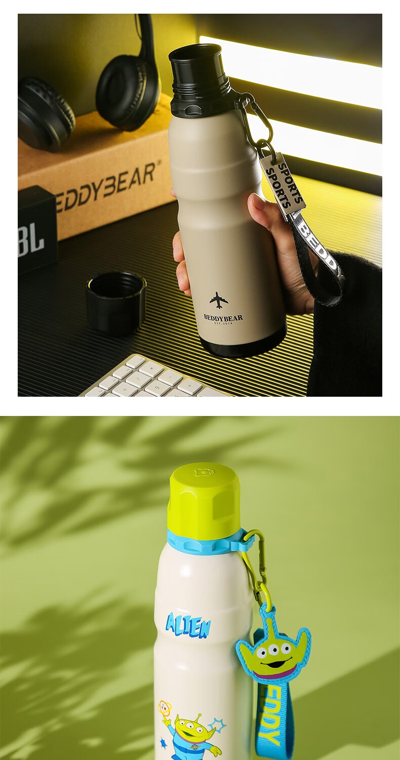 BEDDYBEAR杯具熊 户外运动水杯男女士保温杯保冷大容量上学用水杯便携送礼物316不锈钢卡通杯子 600ml