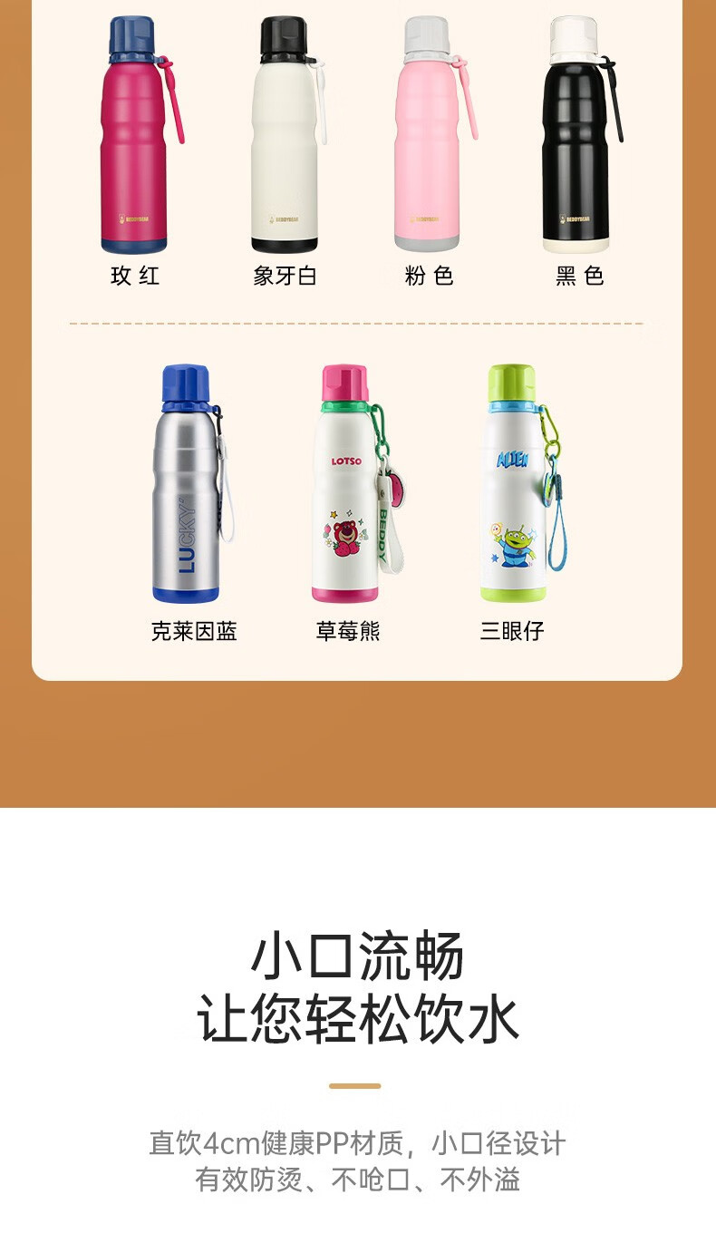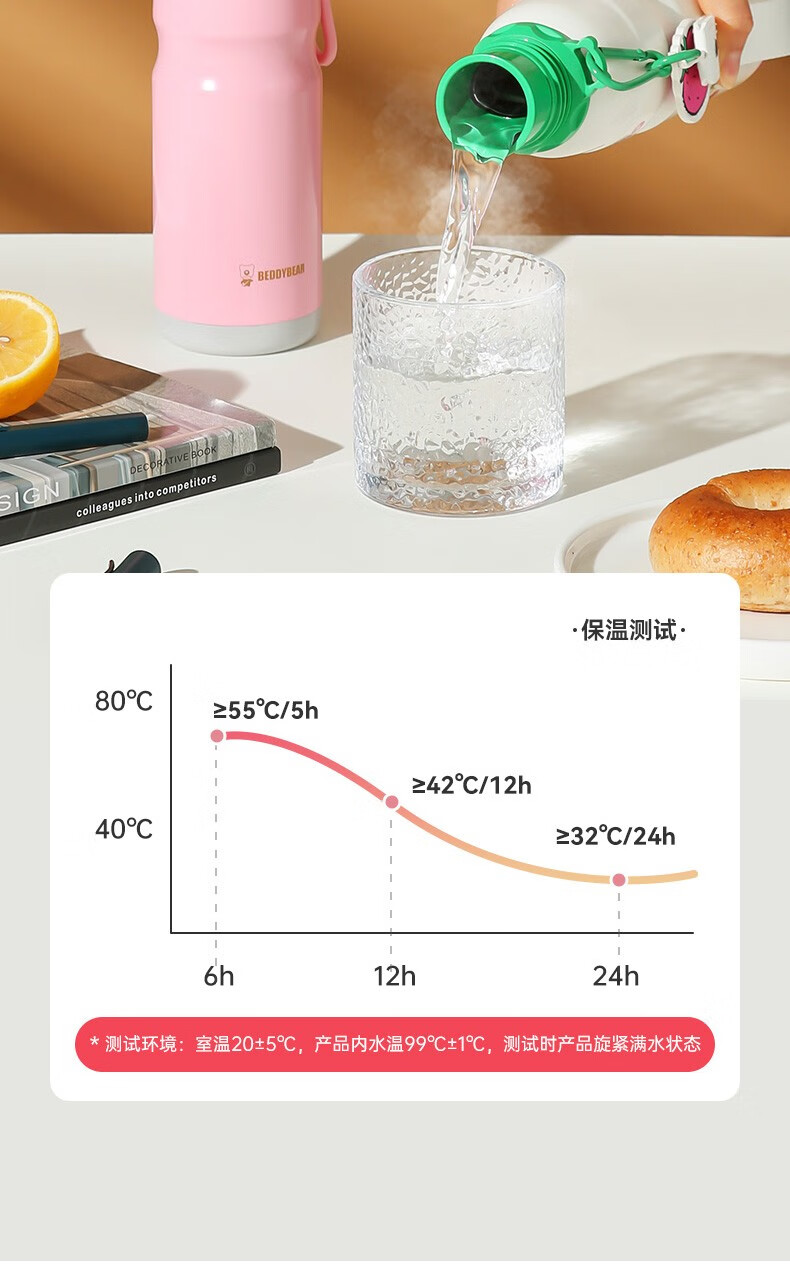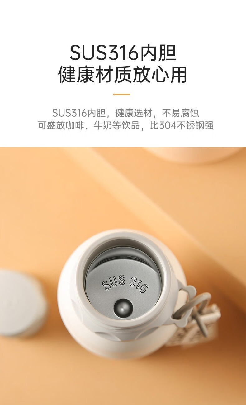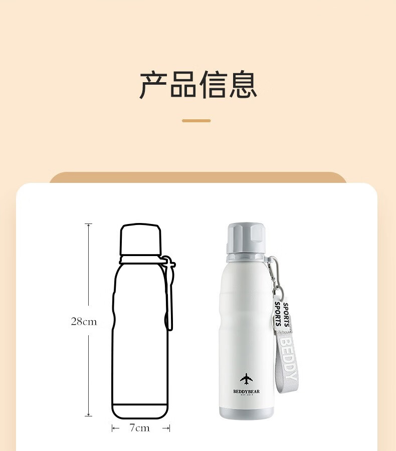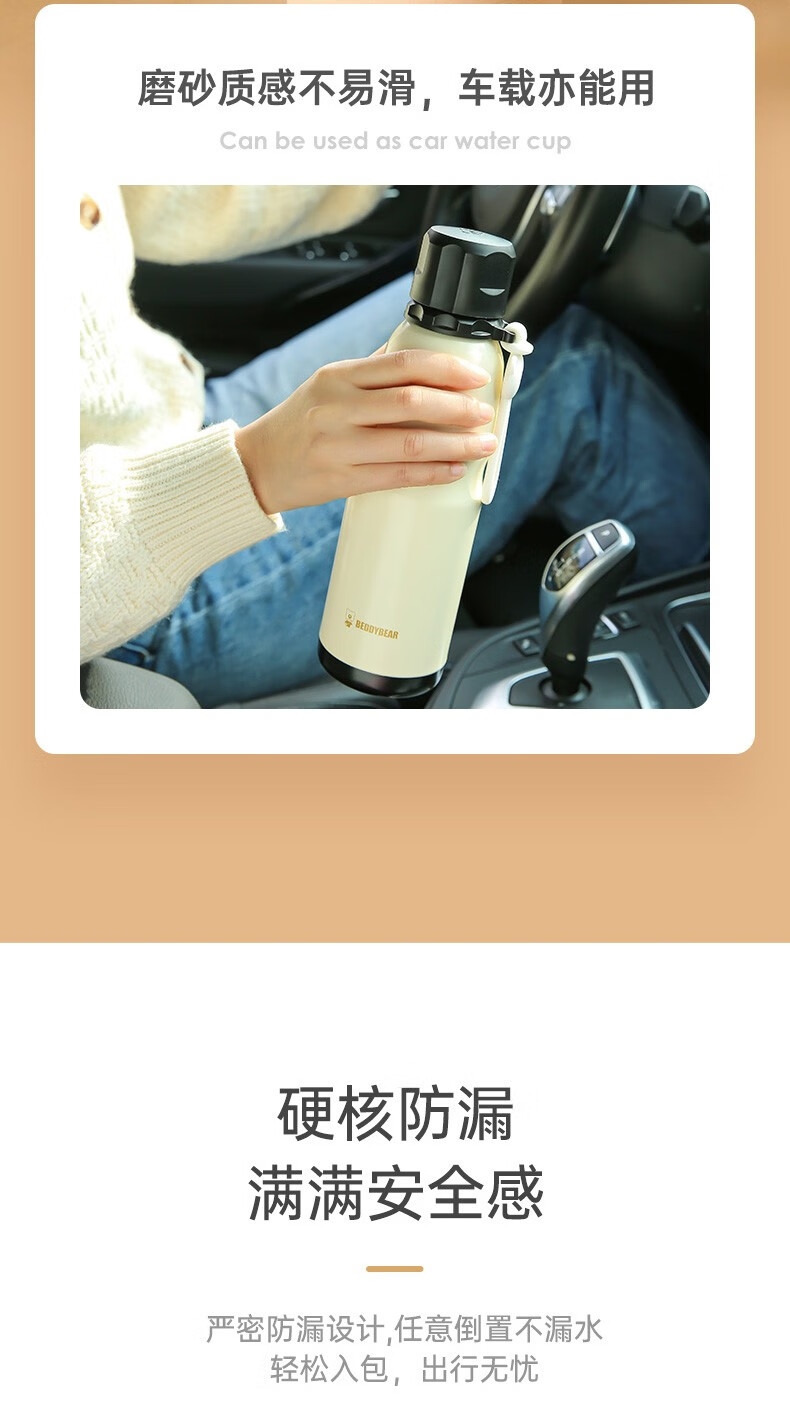 BEDDYBEAR杯具熊 户外运动水杯男女士保温杯保冷大容量上学用水杯便携送礼物316不锈钢卡通杯子 600ml