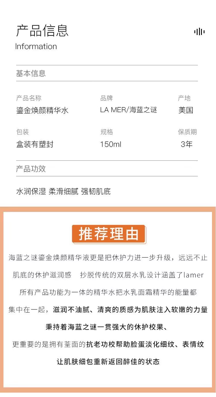 LA MER海蓝之谜鎏金焕颜精华水150ml
