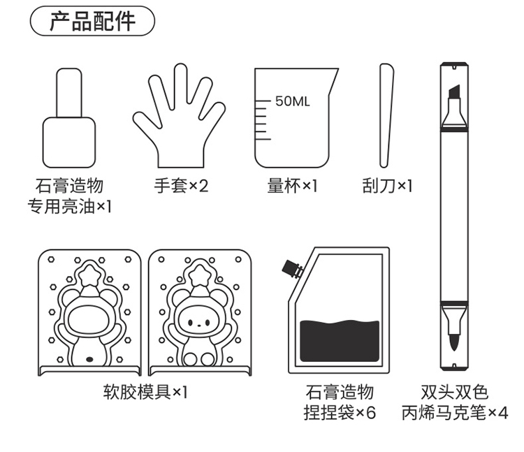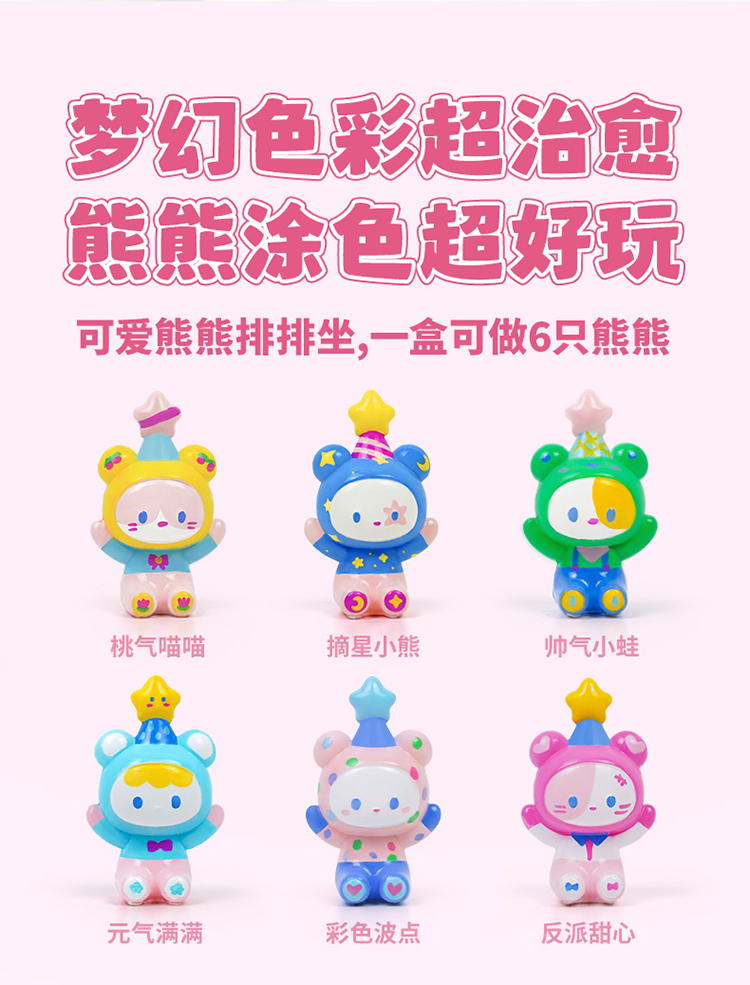 现货TOI图益熊熊艺术家DIY石膏涂色内含6个捏捏袋可做6个熊熊摆件