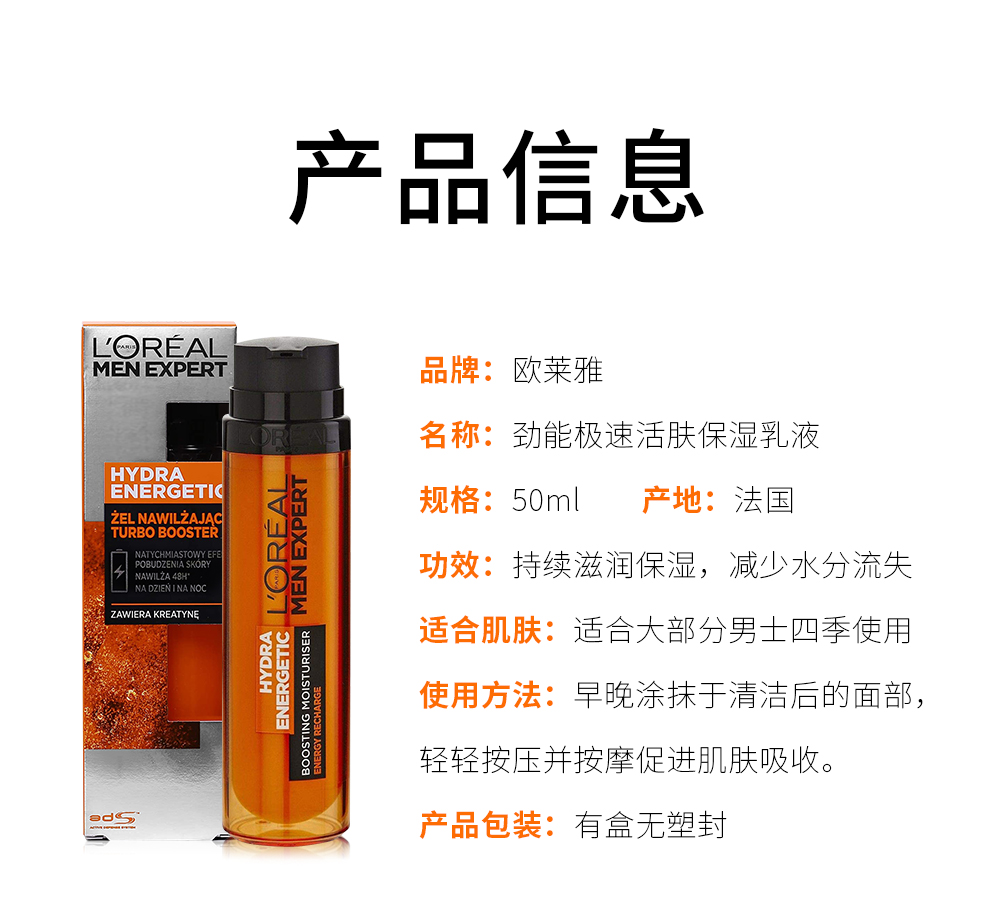 欧莱雅(LOREAL) 男士面霜控油保湿乳液劲能醒肤露 男士劲能醒肤露50ml