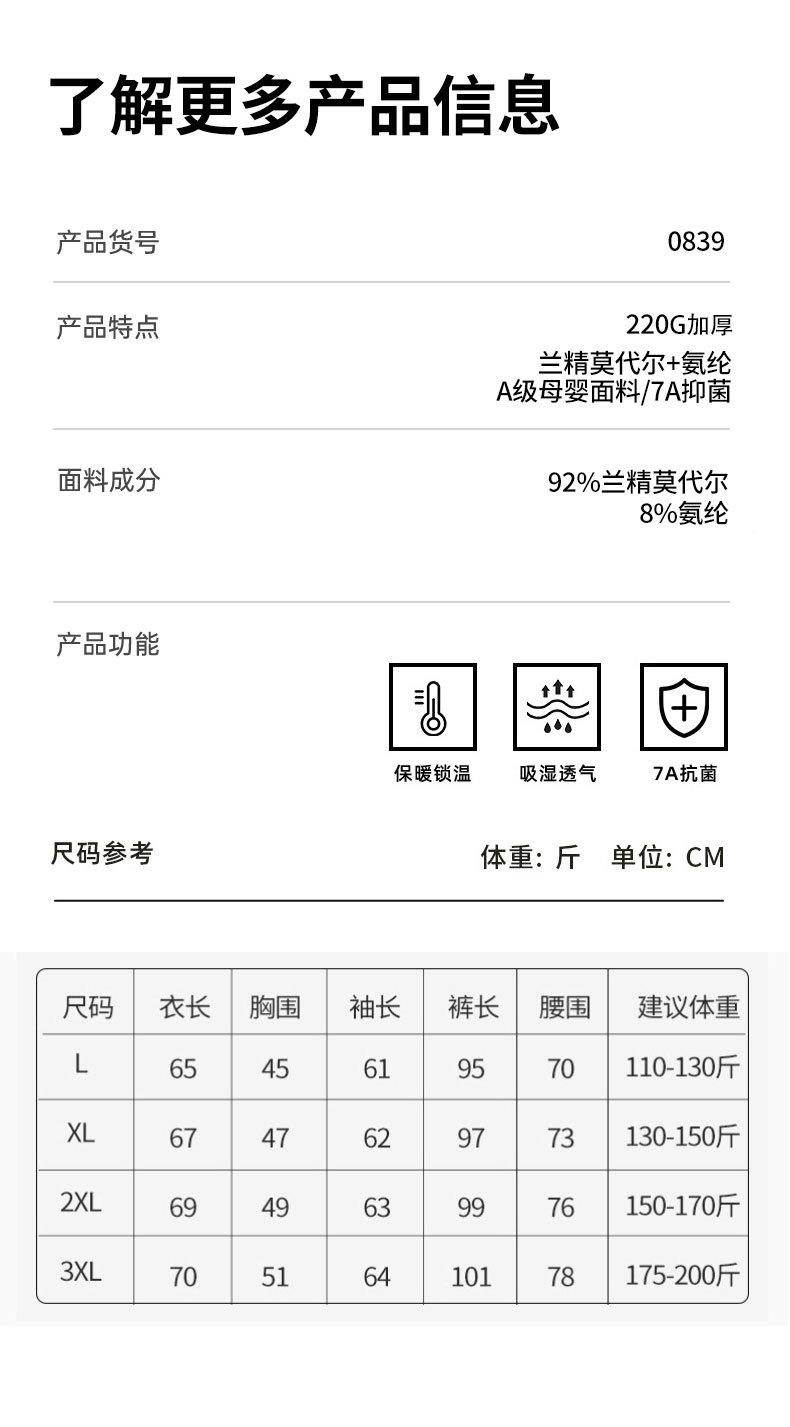 【A类男士80支兰精莫代尔保暖内衣套装】10A抗菌220g高弹力秋衣秋裤男