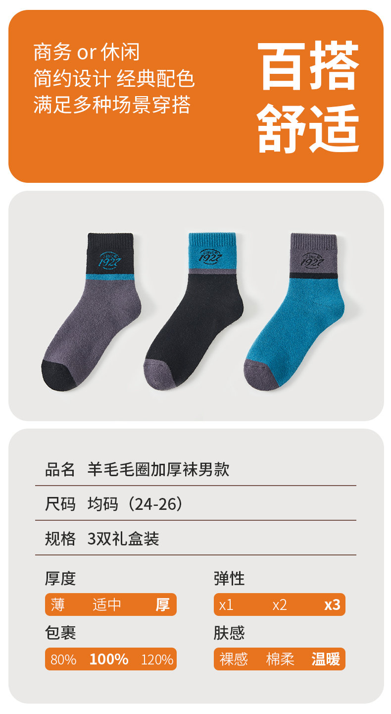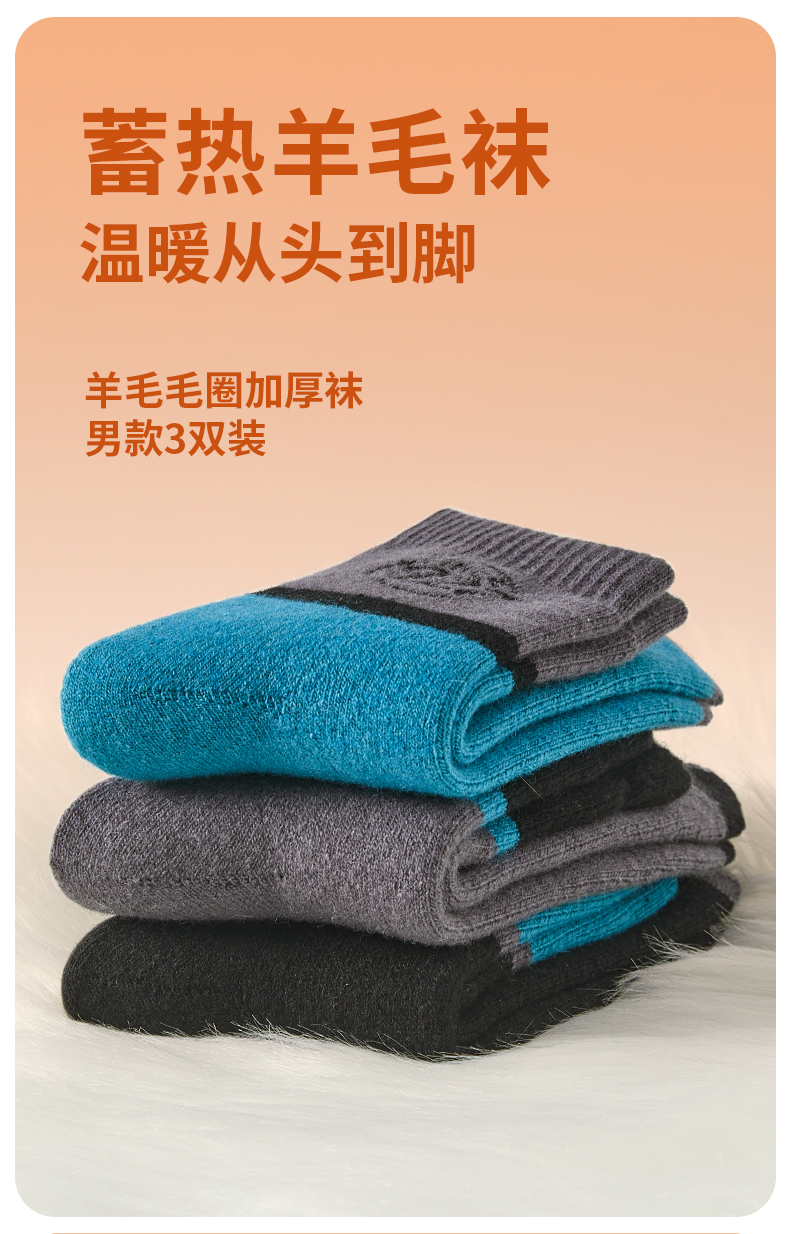恒源祥 羊毛毛圈加厚袜男款3双装 HYX066WZ
