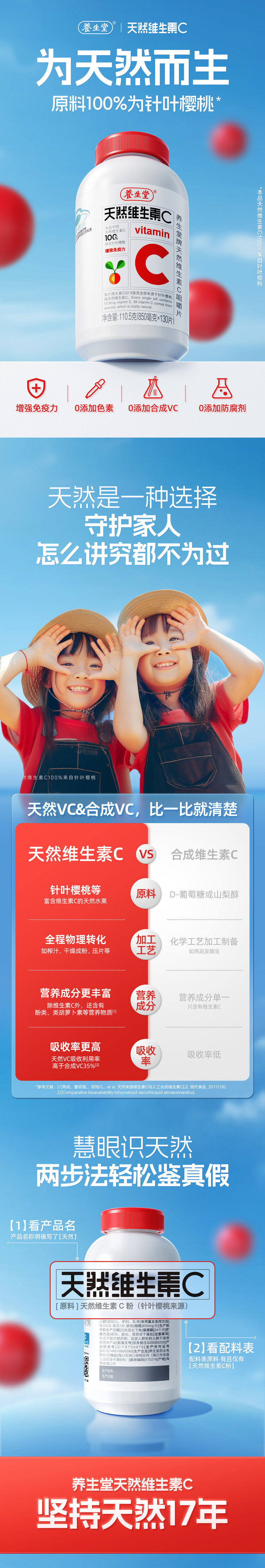 严选 | 养生堂天然维生素C180片(90片*2瓶)