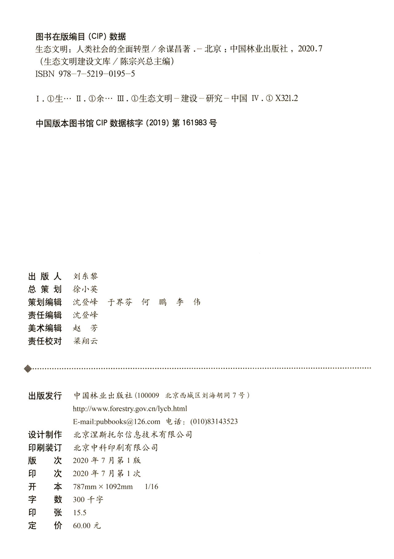 我国生态文明建设的理论与实践成果呈现出阶段性与整体性的有机统一。在新的历史时期,紧紧抓住历史机遇,承担起历史使命,毫不动摇地加快推进生态文明建设,深入实施可持续发展战略,大力推进资源节约型、环境友好型社会建设,加快推进节能减排,加快污染防治,加快建立资源节约型技术体系和生产体系,加快实施生态工程,有助于推动整个社会走上生产发展、生活富裕、生态良好的三生共赢的文明发展道路,有助于提高我国经济的国际竞争力和抗风险能力。全书共收录了十章,包括价值观转型,走出人类中心主义;哲学转型,从人统治自然的哲学走向人与自然和谐的哲学;社会政治转型,从资本专制主义到人民民主主义;生产方式转型,从线性经济到循环经济等。