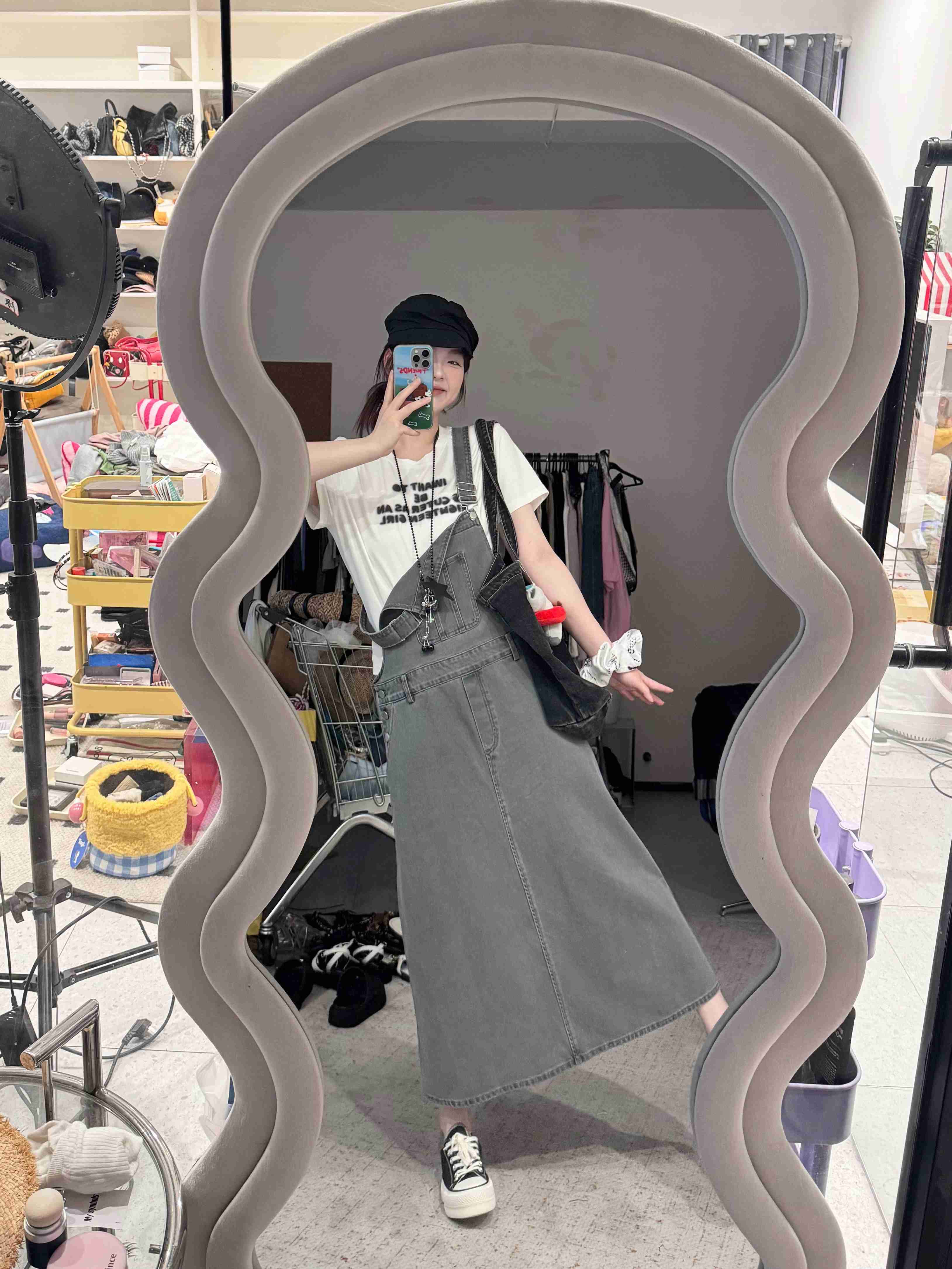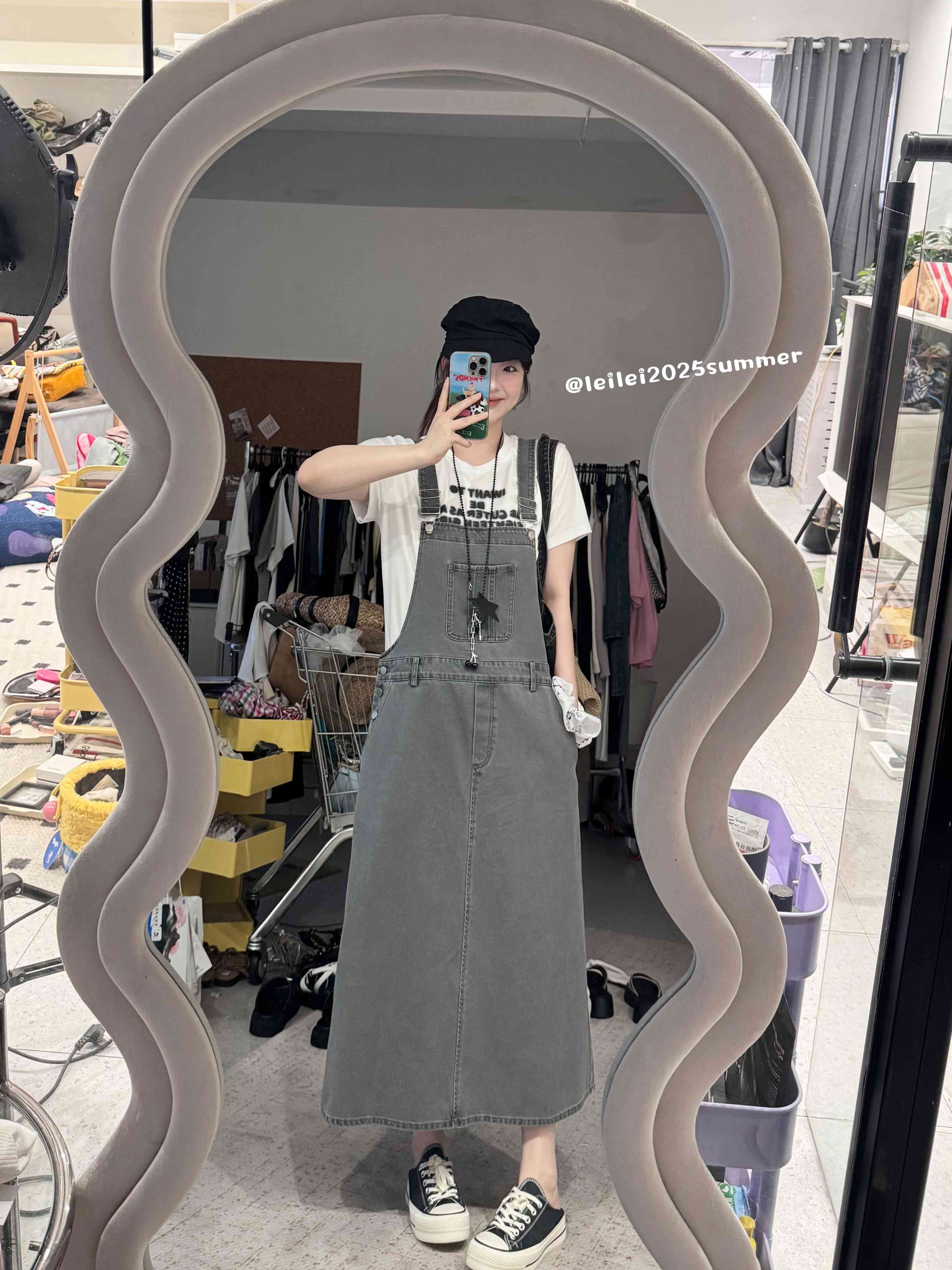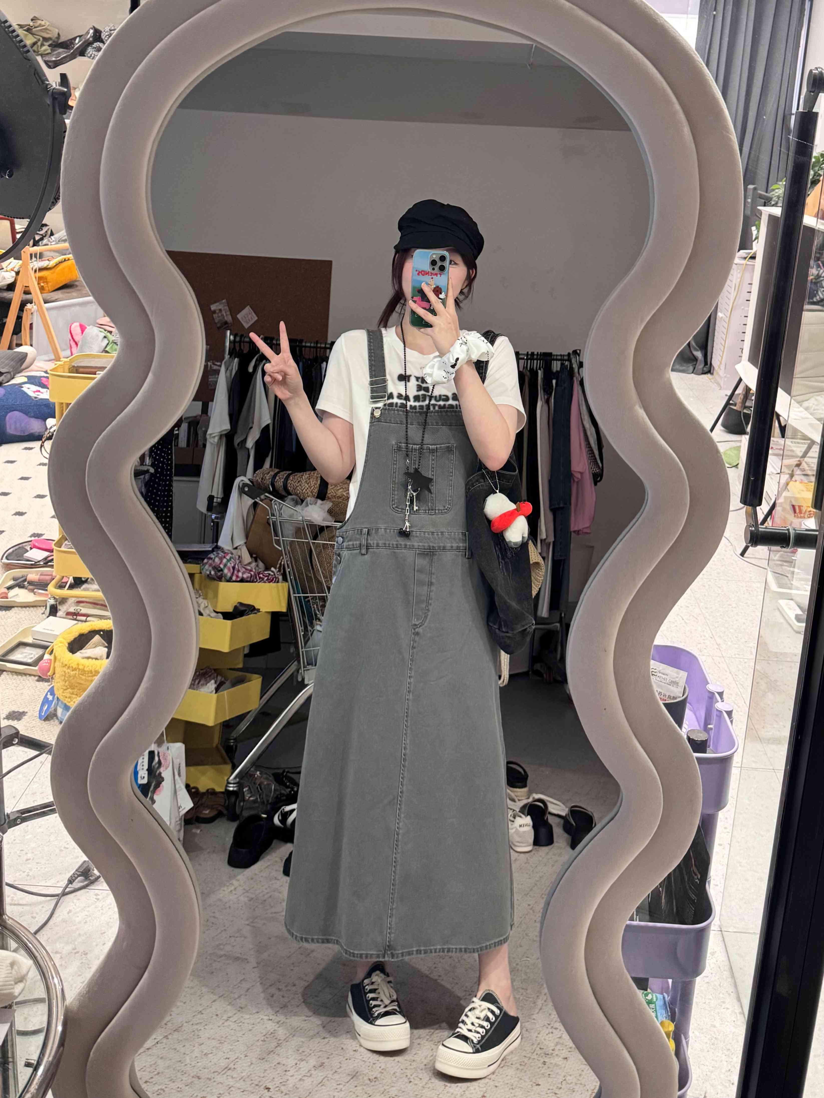 2025新品 蕾蕾同款【重返十八岁】韩系复古水洗大口袋宽松A字背带牛仔裙