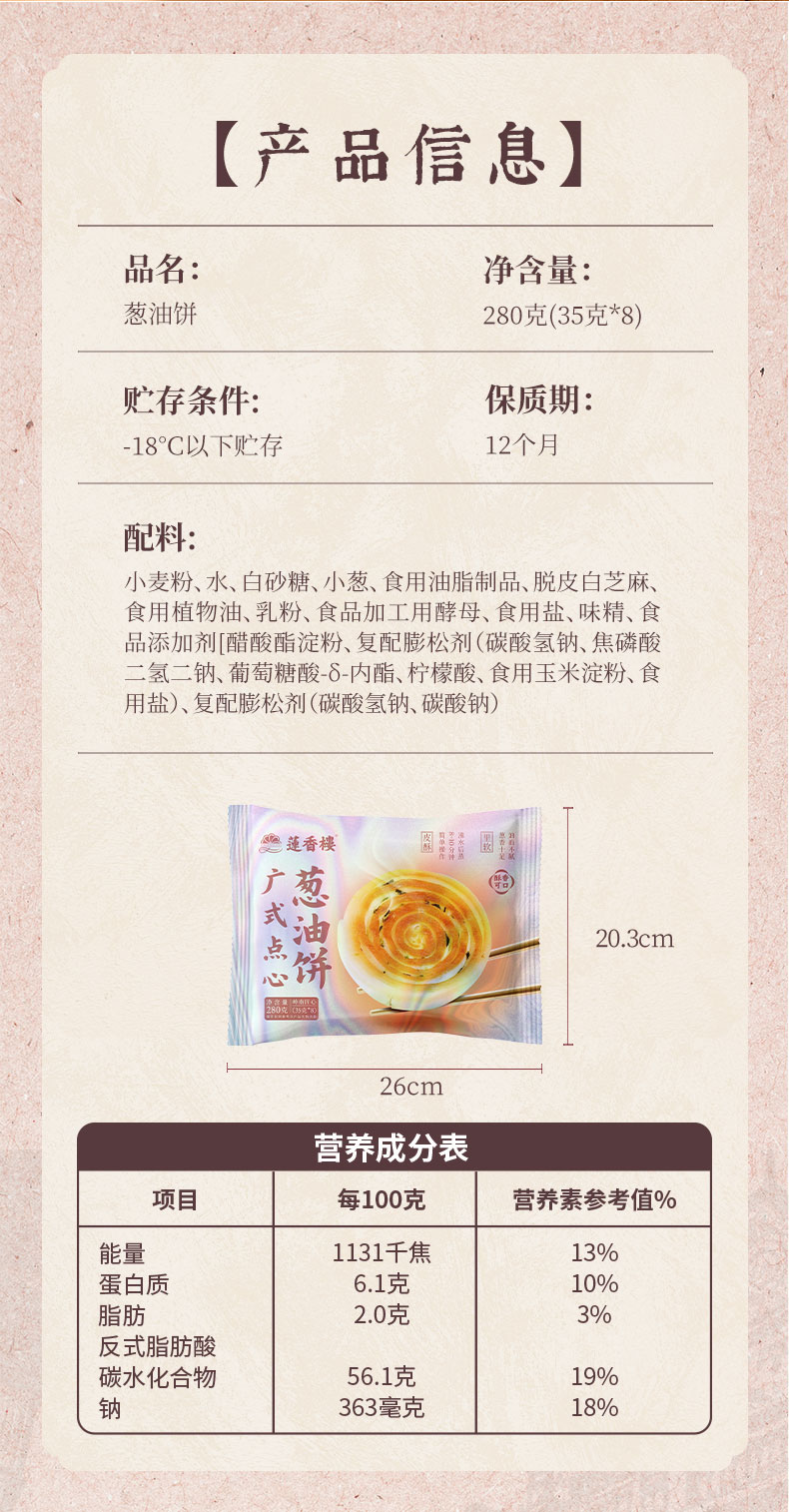 莲香楼葱油饼280g*4袋