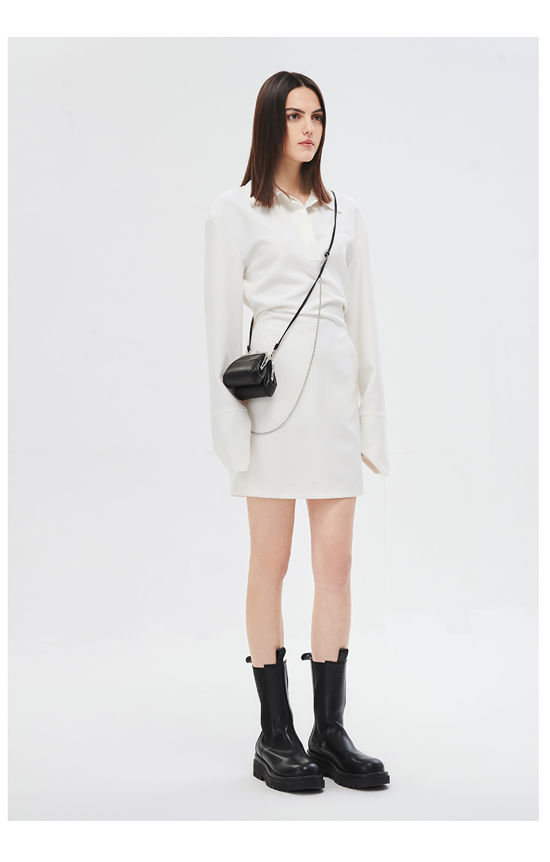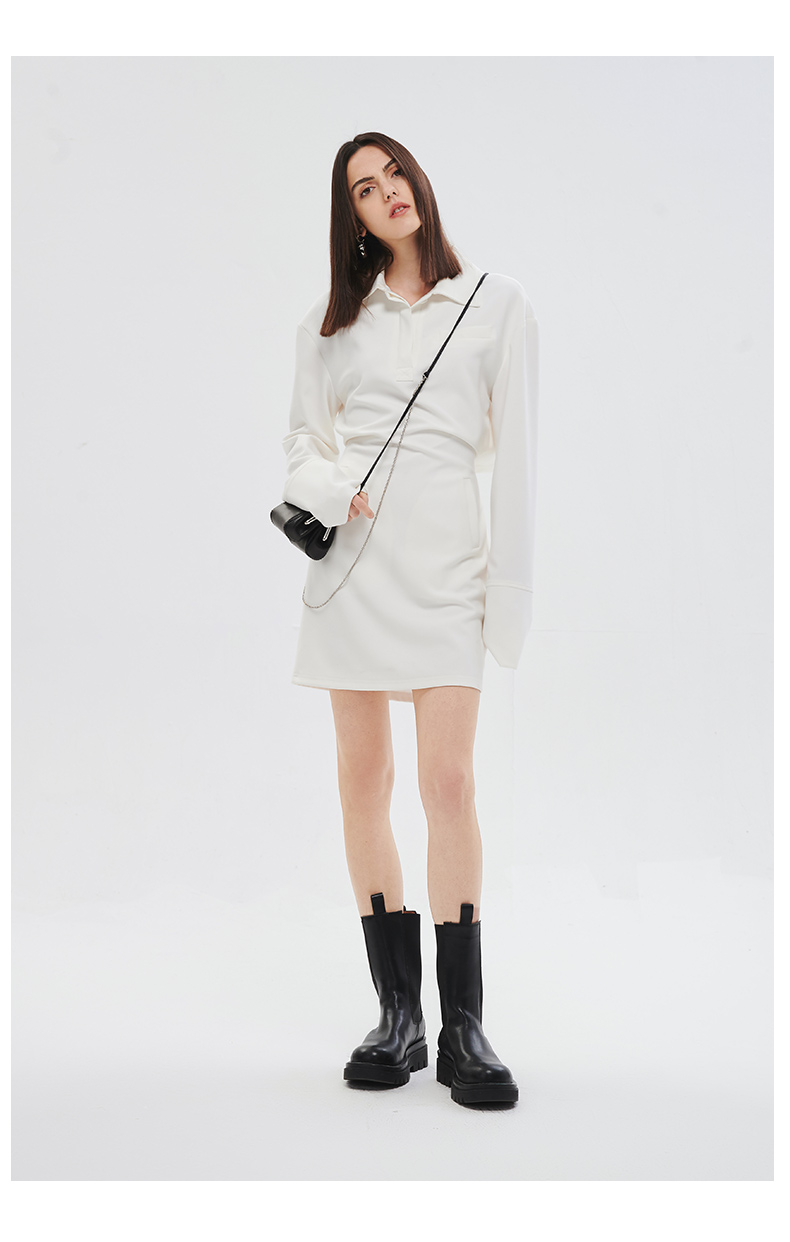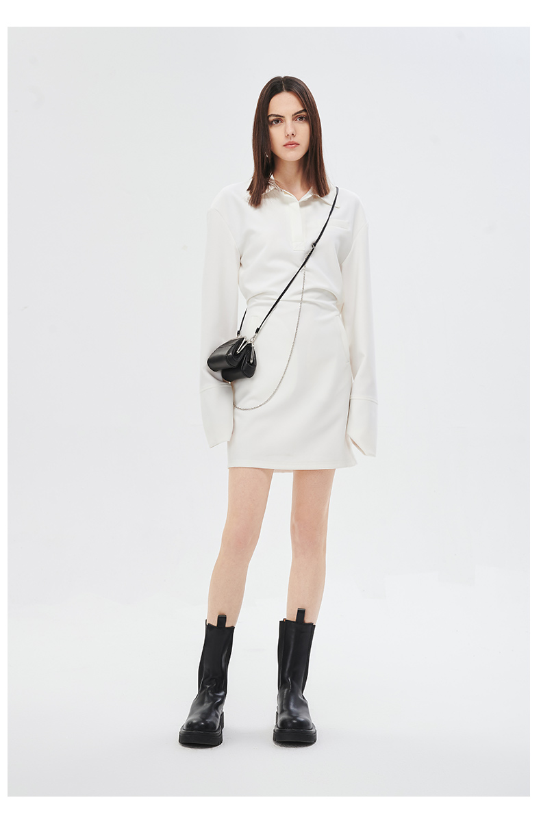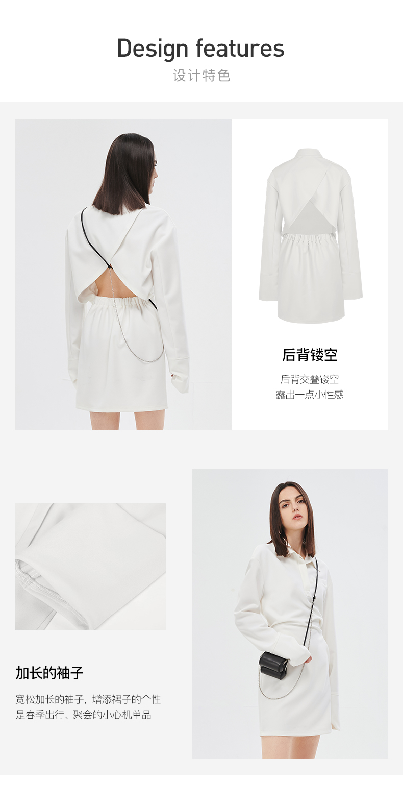 Self Who微弹力TR料不易皱后背镂空小心机polo连衣裙2023春白色