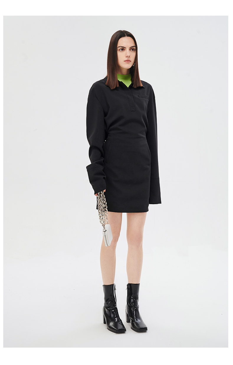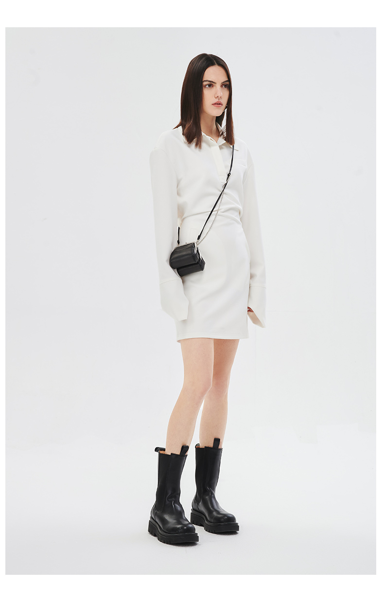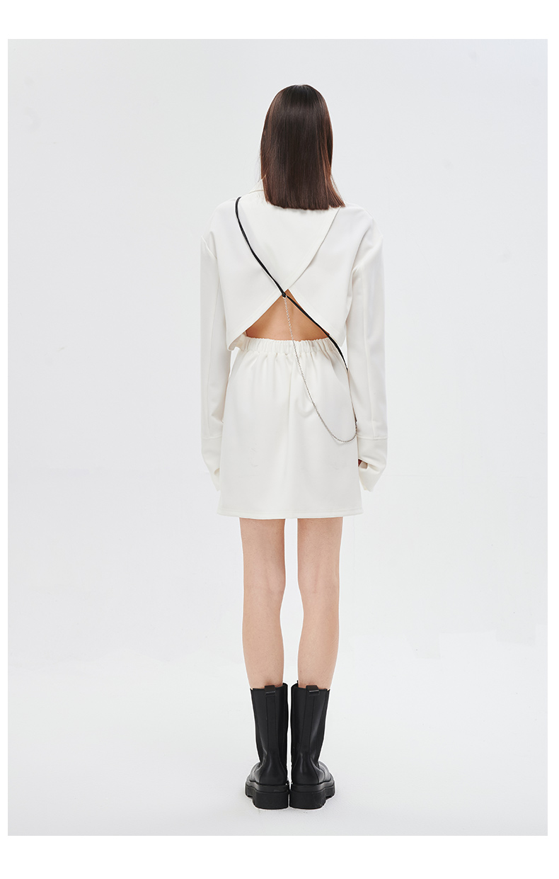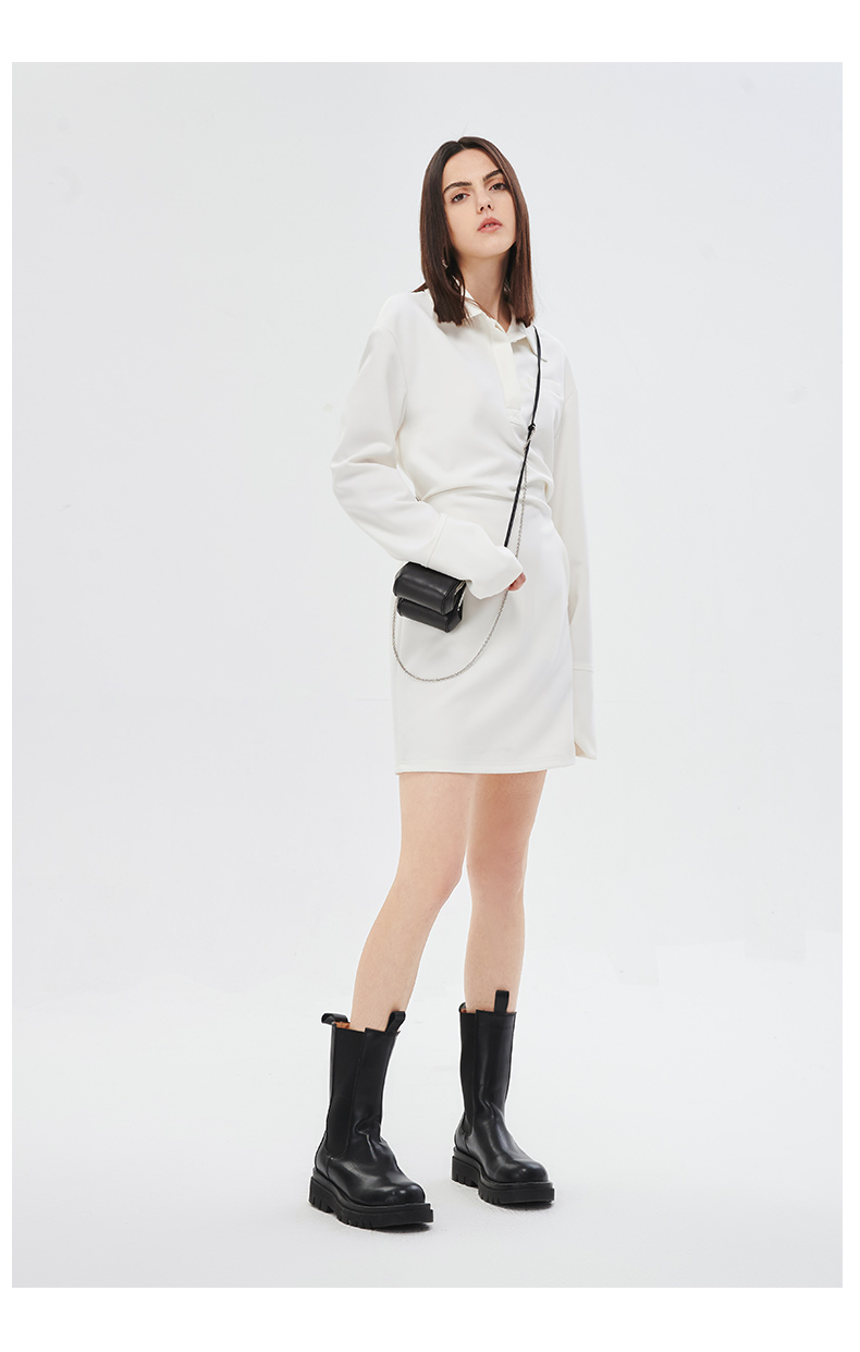 Self Who微弹力TR料不易皱后背镂空小心机polo连衣裙2023春白色