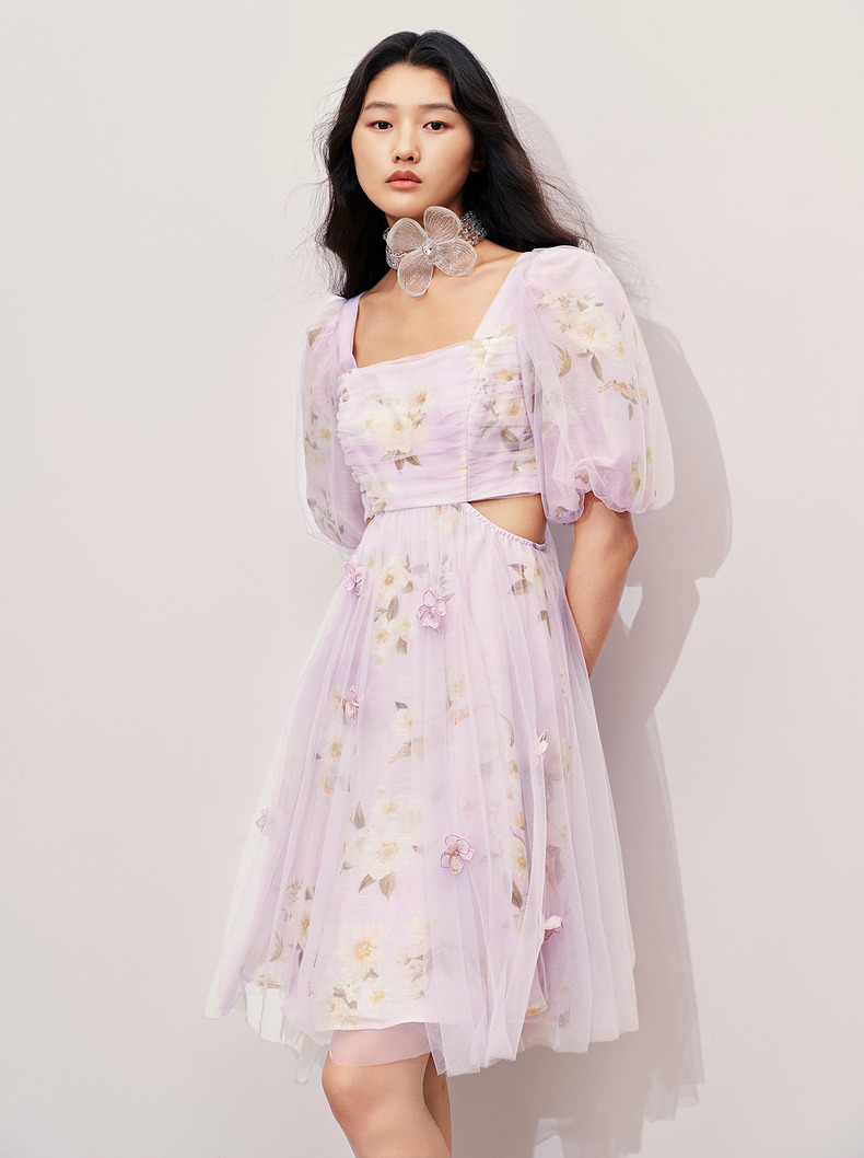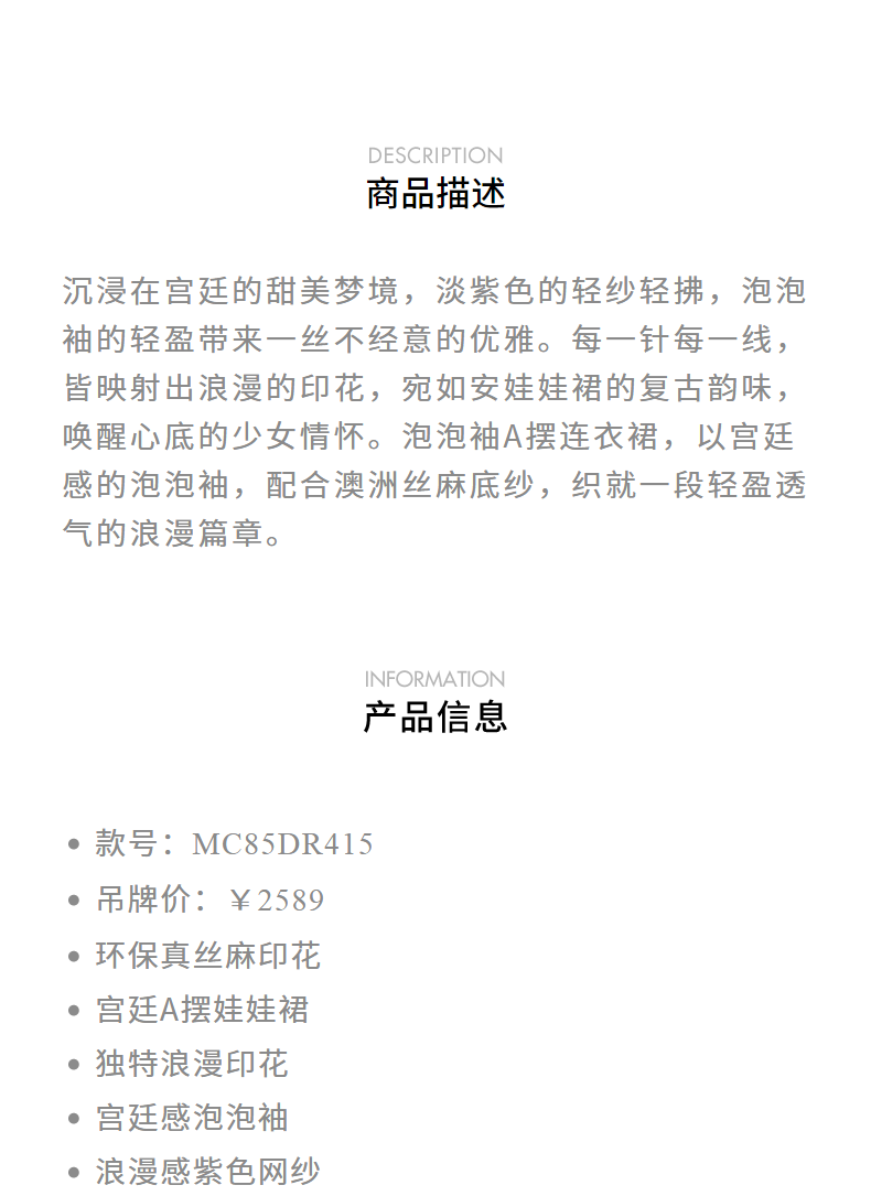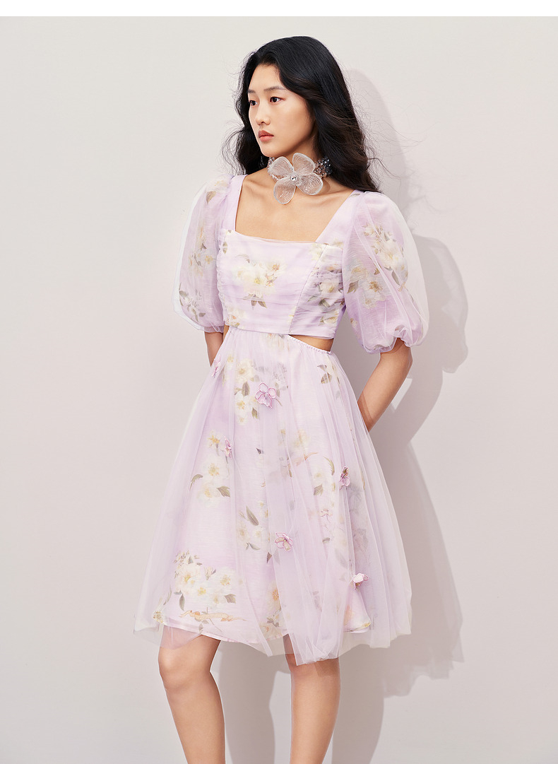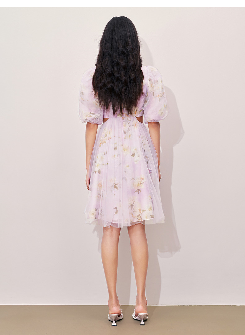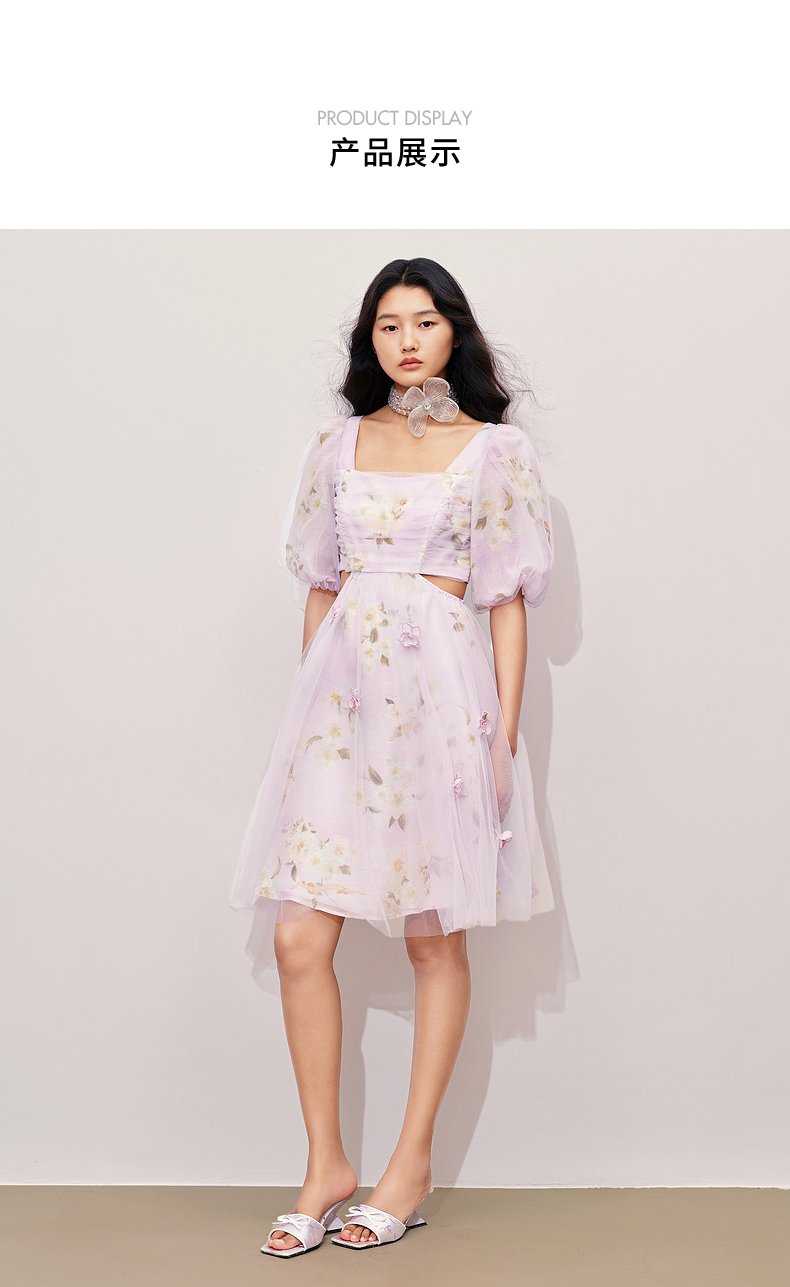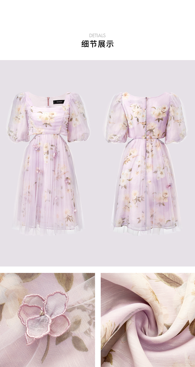 玛克门店发货:MAXRIENY*浪漫印花甜美宫廷网纱连衣裙(货号:MC85DR415)