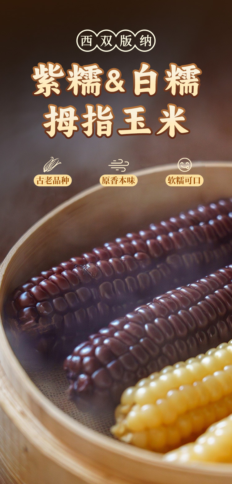 在菌屋 云南西双版纳白糯拇指玉米&紫糯拇指玉米500g/袋 3分甜 7分糯 非转基因老品种