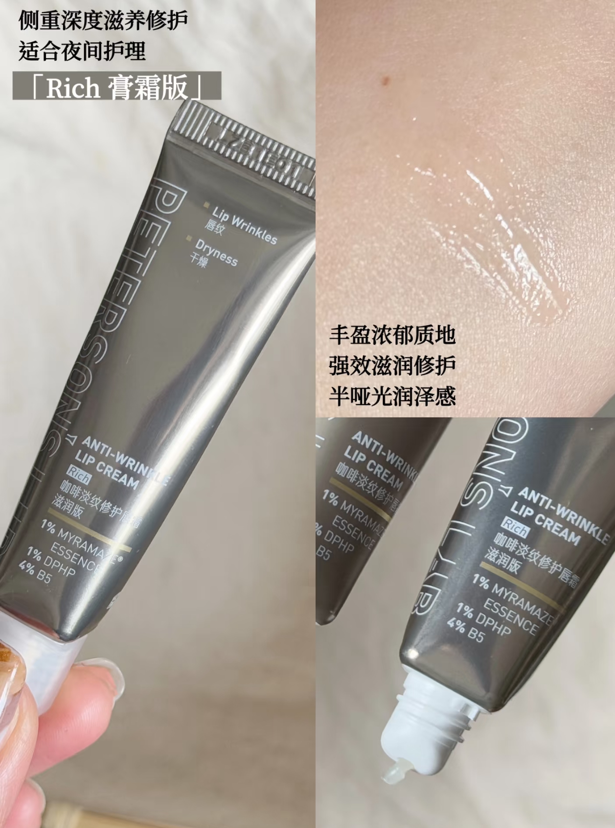 上唇会水化,完全不粘不油腻