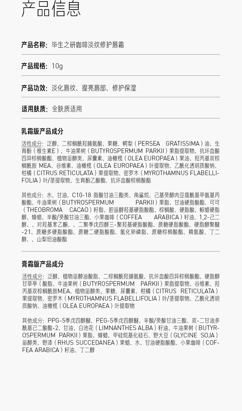 这款毕生之研咖啡淡纹唇霜