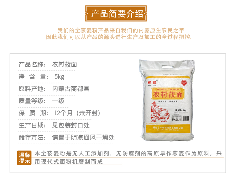 【薯都小镇·农村莜面】5KG规格 传统工艺 低糖健康