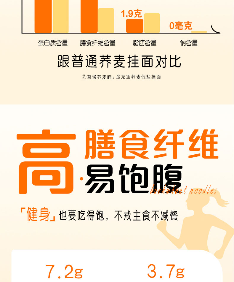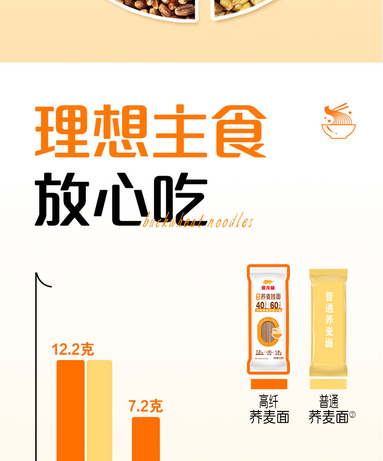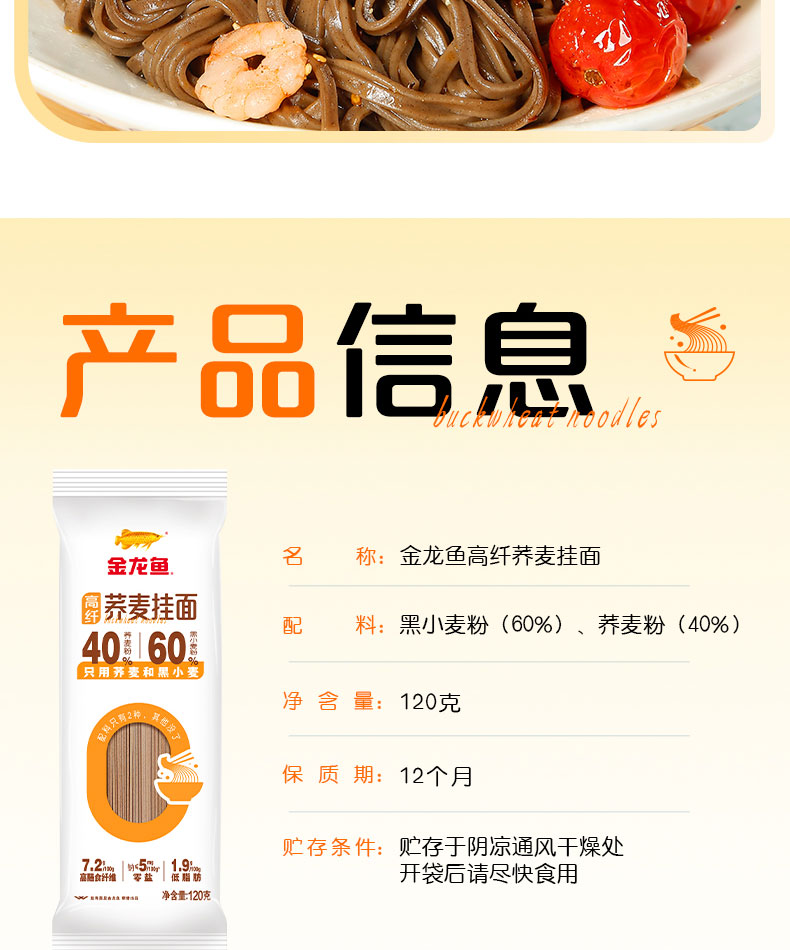金龙鱼荞麦系列高纤荞麦挂面120G*6