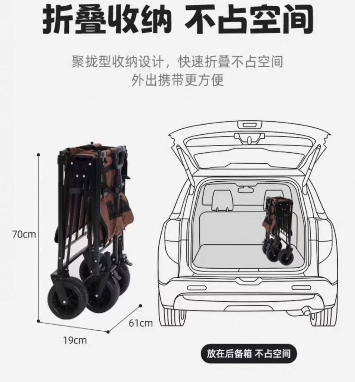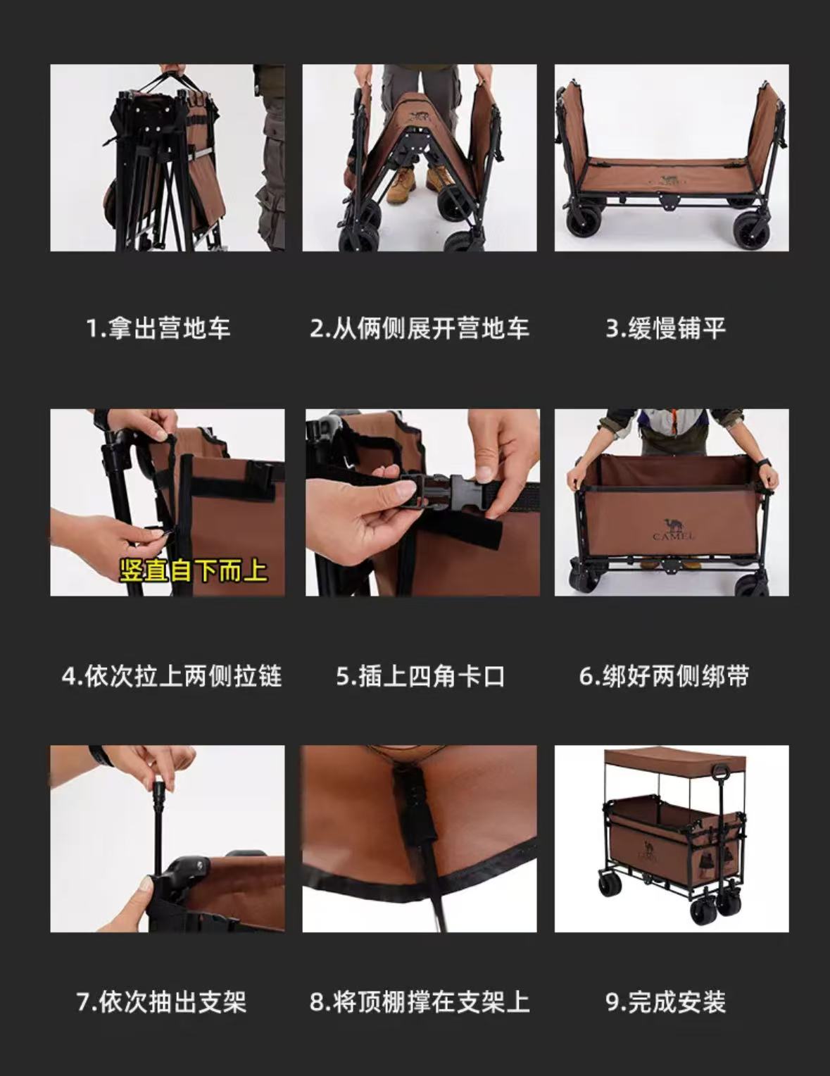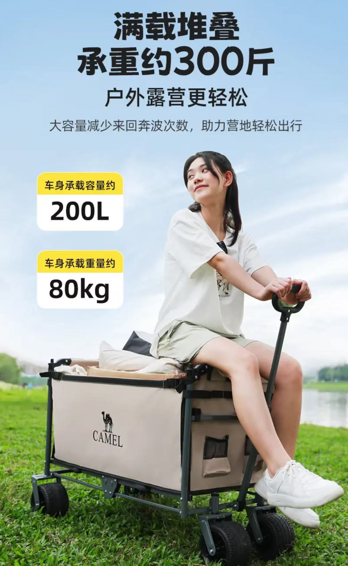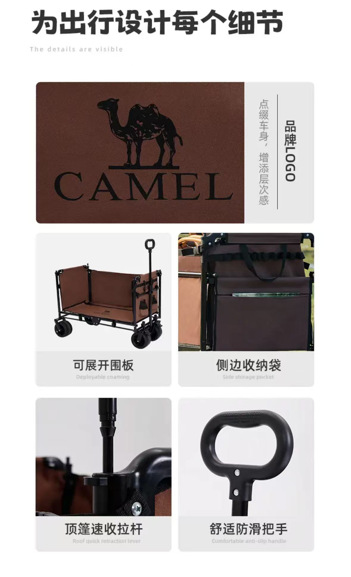 骆驼露营车手推车户外营地车遮阳带顶棚旅行折叠拖车