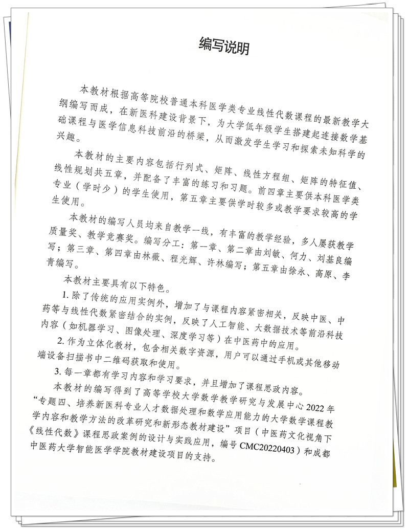 医用线性代数 林薇 刘敏 主编 中国中医药出版社 全国中医药行业高等教育十四五创新教材