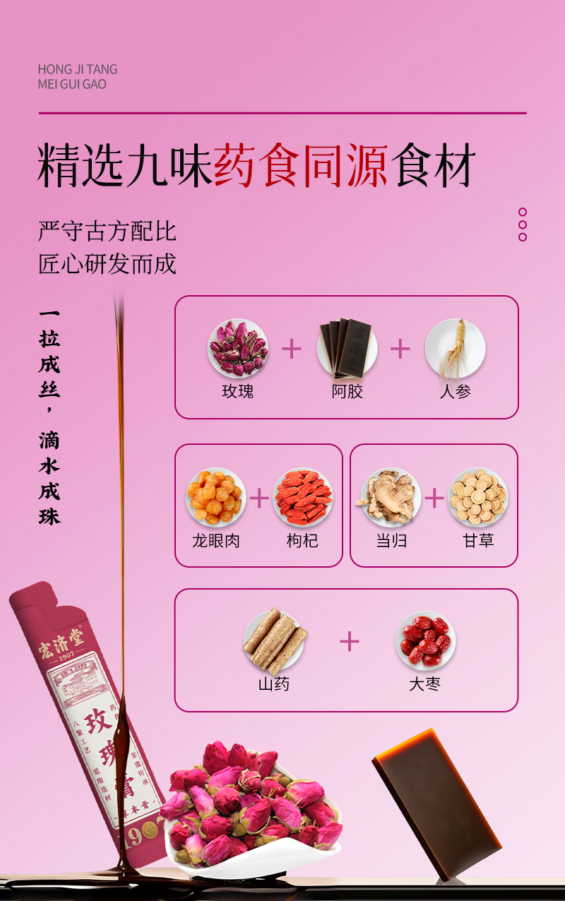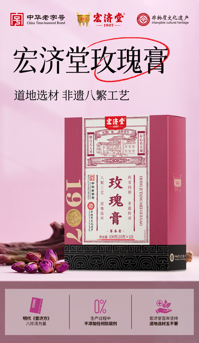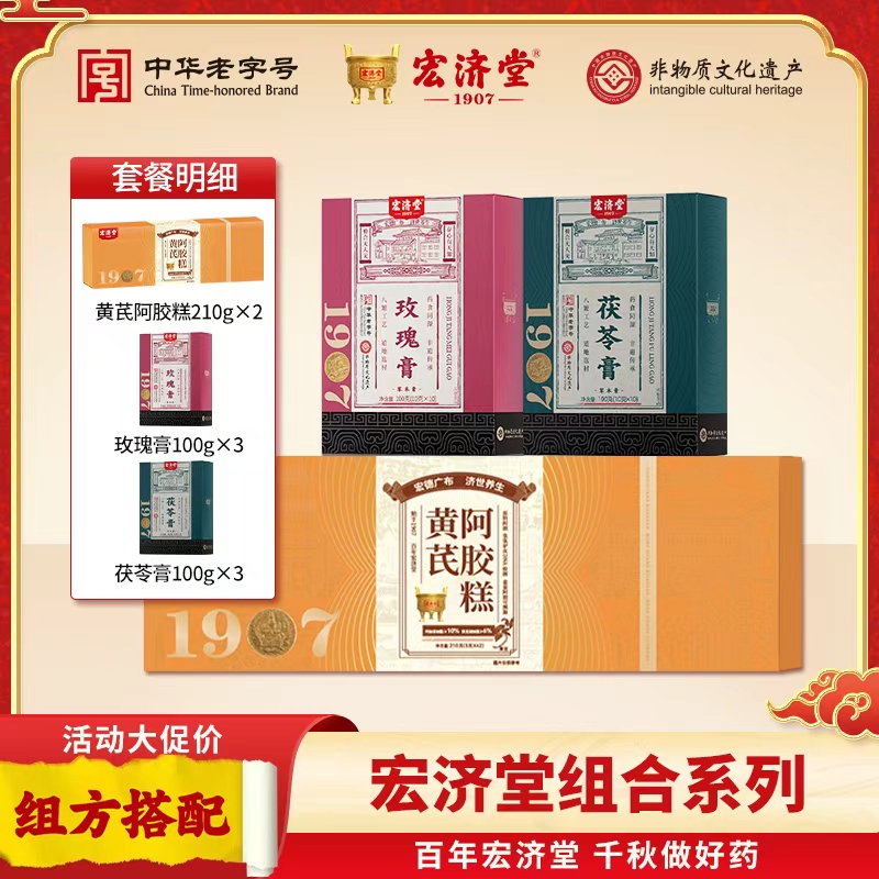 严选 | 宏济堂疏肝解郁套餐 黄芪阿胶糕210g*2盒+玫瑰膏100g*3盒+茯苓膏100g*3盒