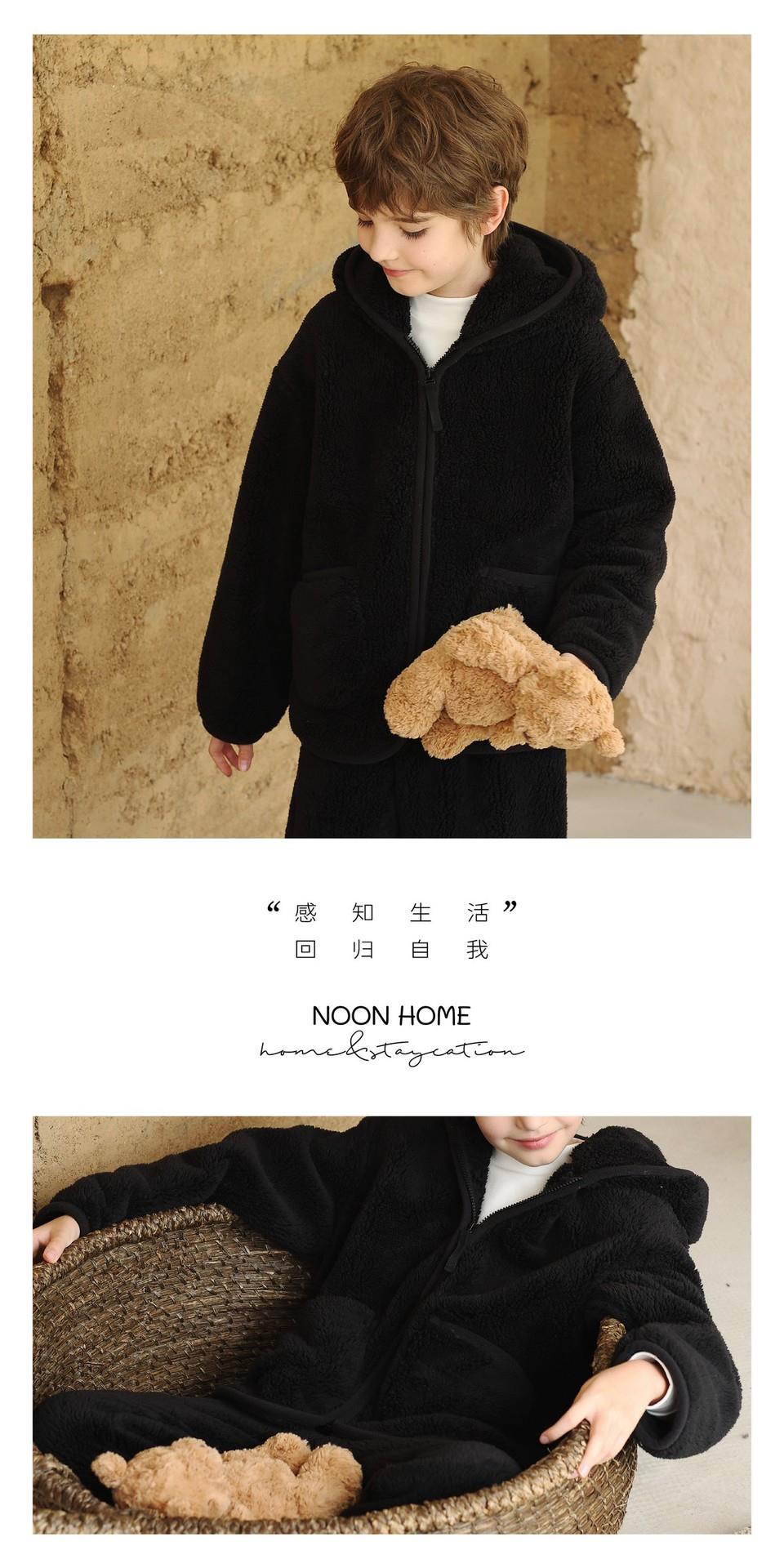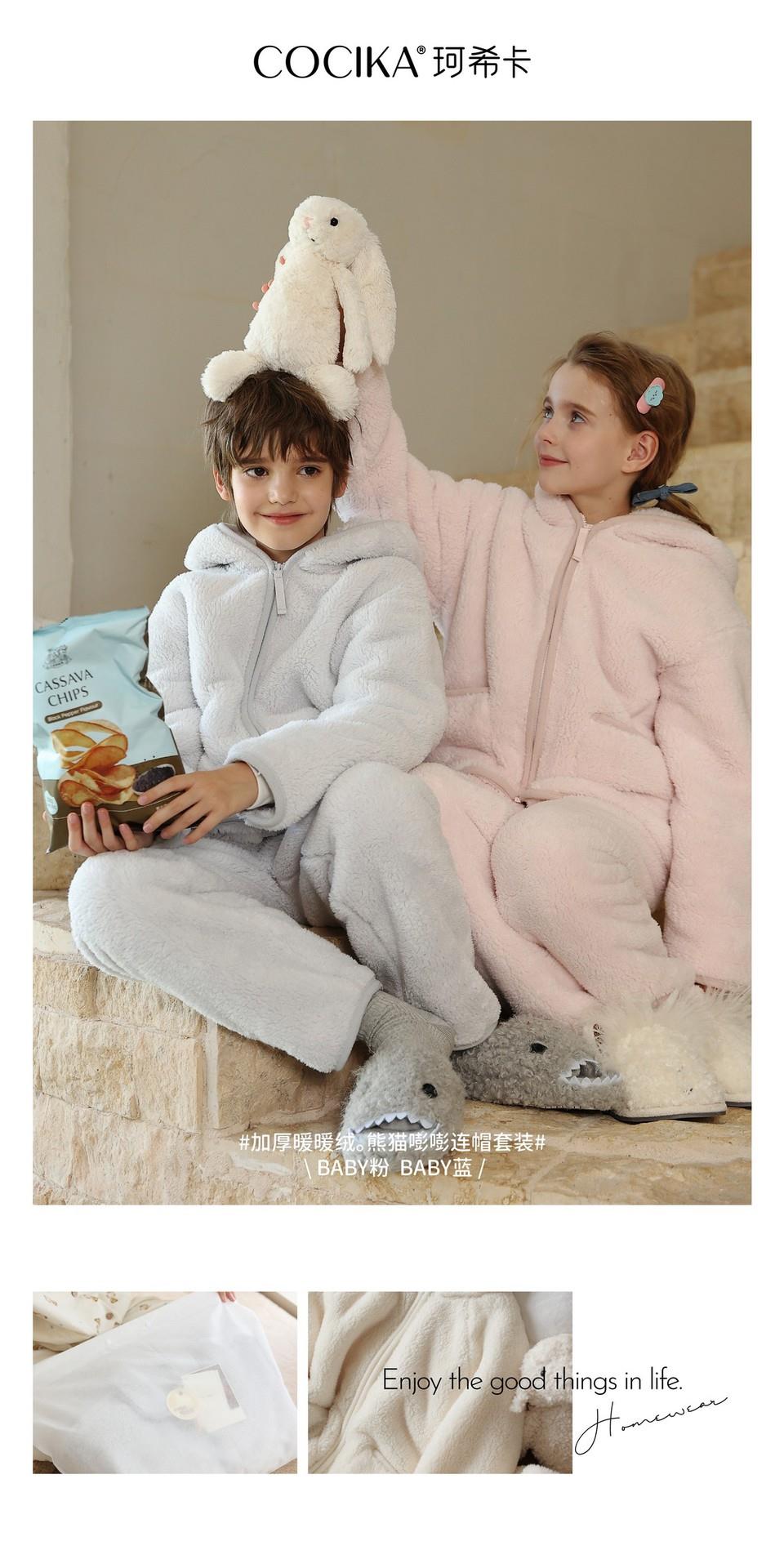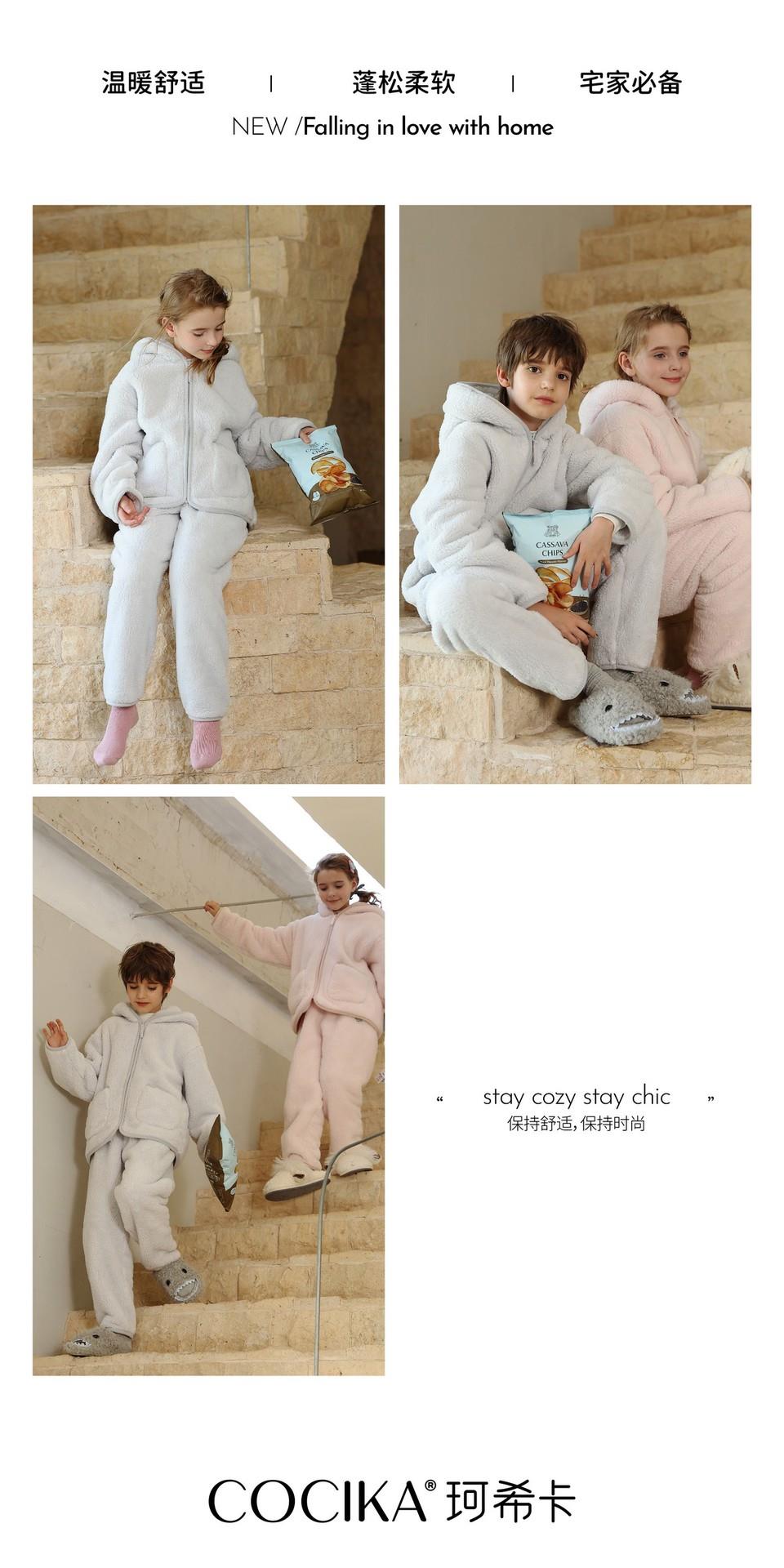 【秋冬新款珊瑚绒儿童睡衣】加绒加厚连帽拉链套装保暖女童家居服