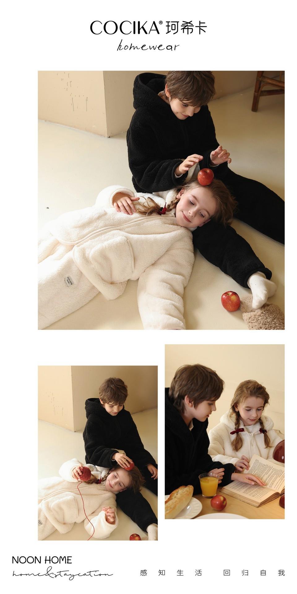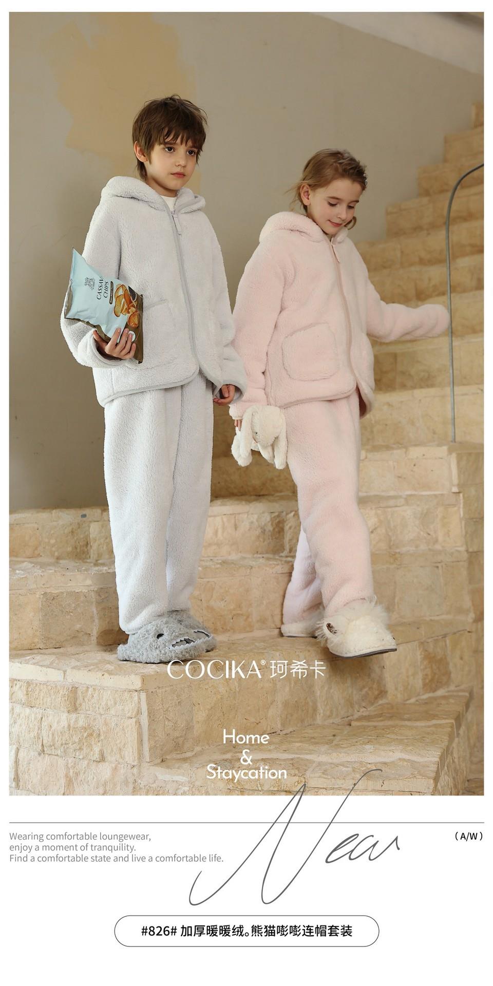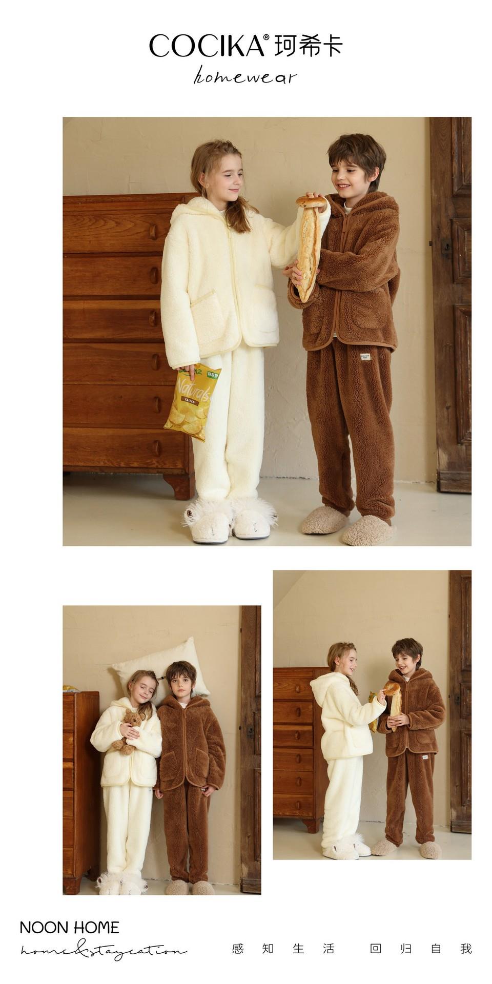 【秋冬新款珊瑚绒儿童睡衣】加绒加厚连帽拉链套装保暖女童家居服