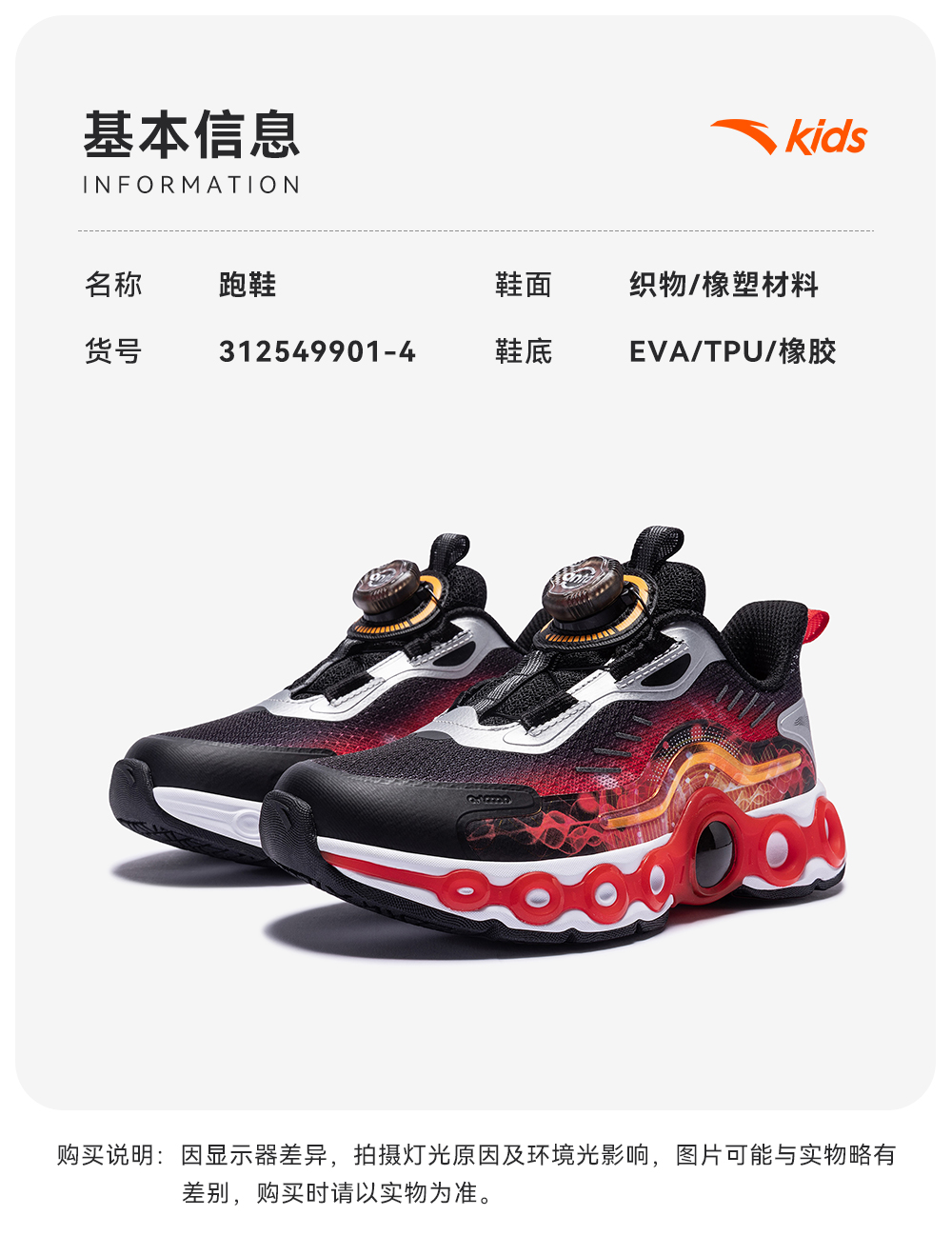 安踏能量环11儿童男小童跑鞋2025秋冬新款潮酷跑步休闲运动夜光鞋312549901