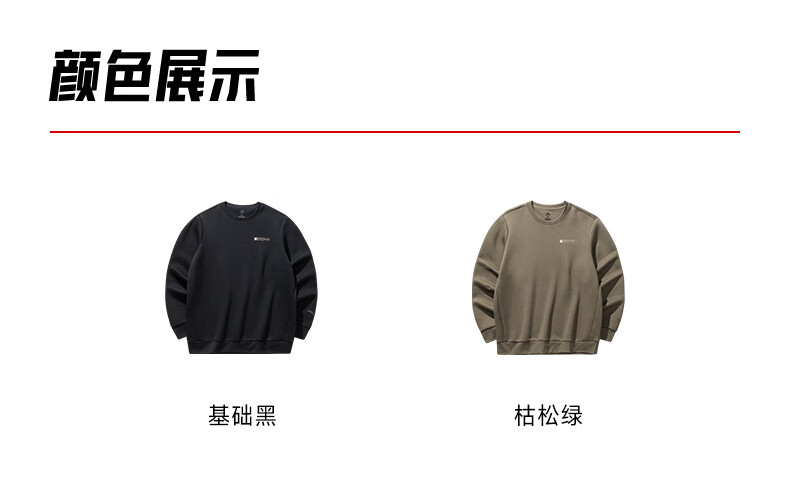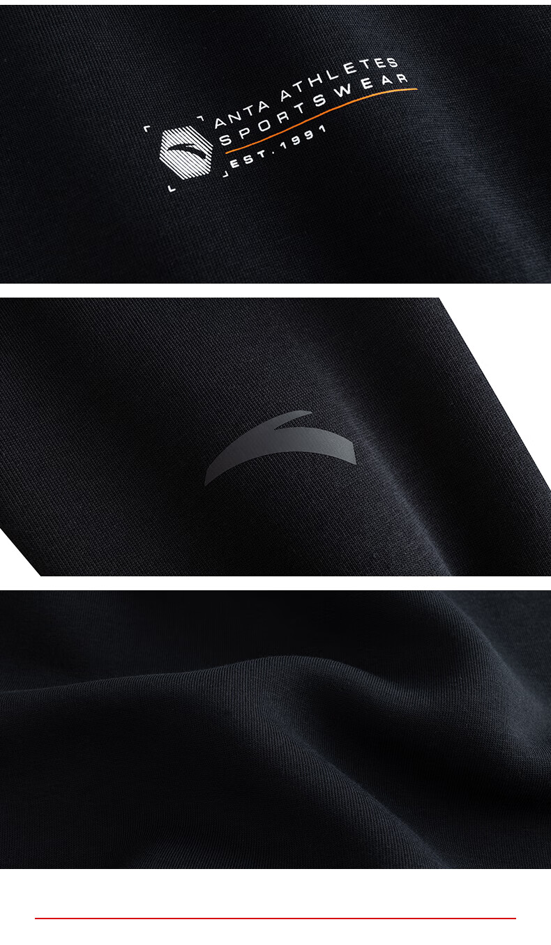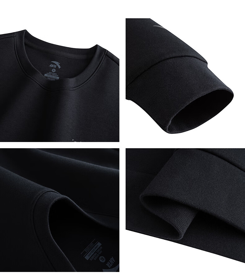 安踏(ANTA)卫衣男子潮流百搭休闲运动上衣黑色圆领长袖套头衫152517710