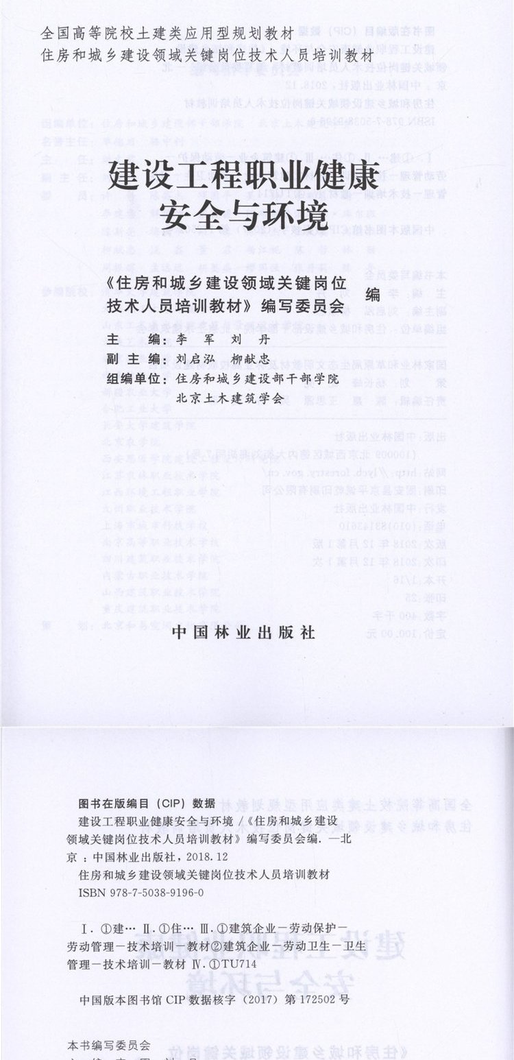 建设工程职业健康安全与环境 9196 全国高等院校土建类应用型规划教材 住房和城乡建设领域关键岗位技术人员培训教材 中国林业出版