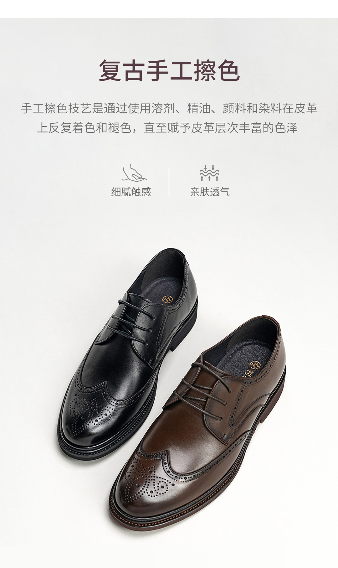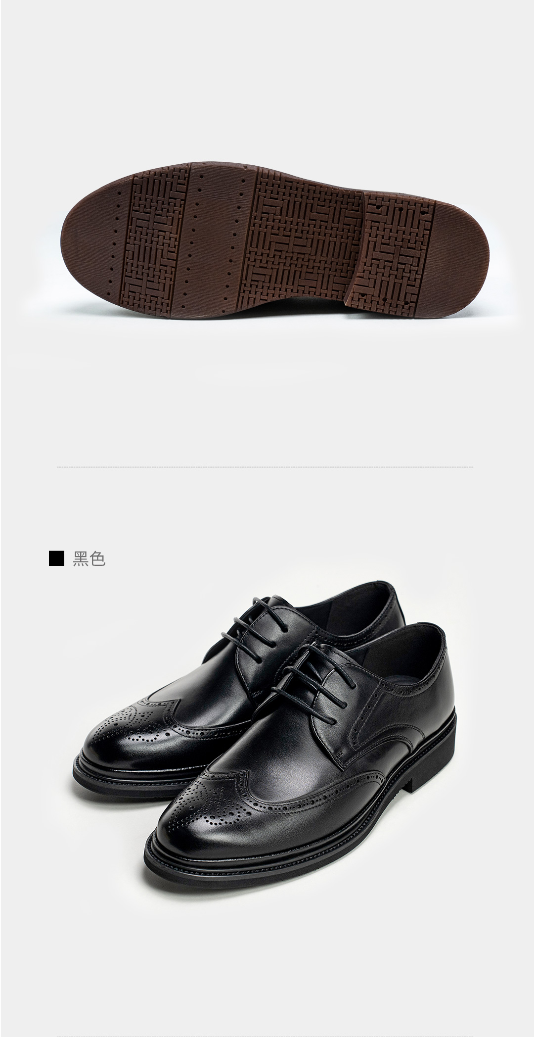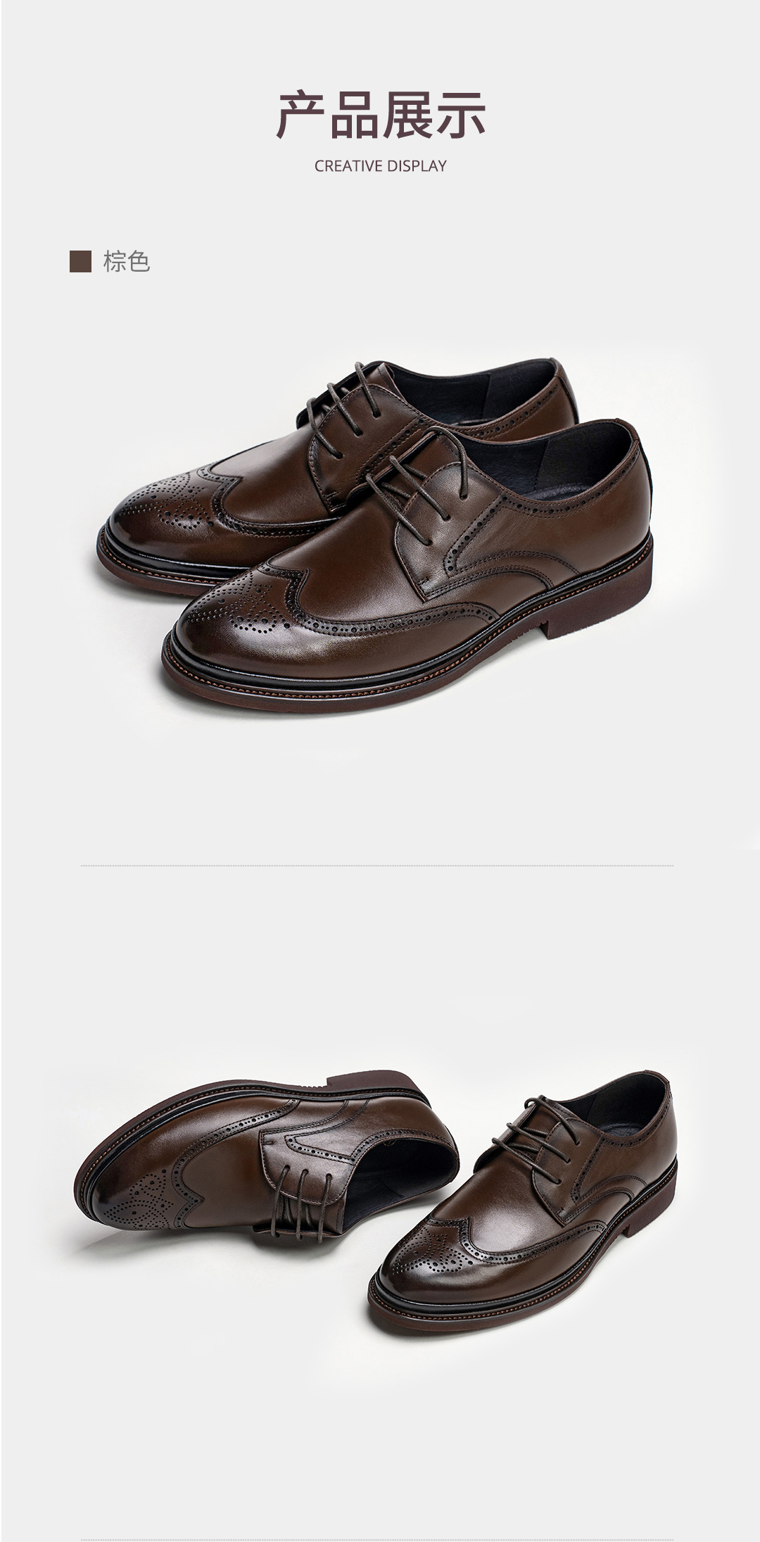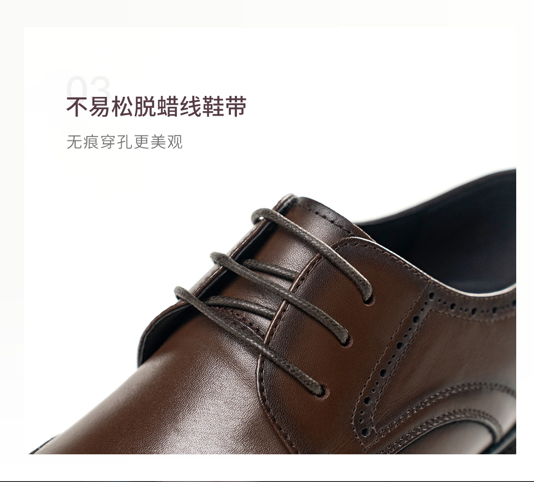 布洛克雕花系带真皮皮鞋