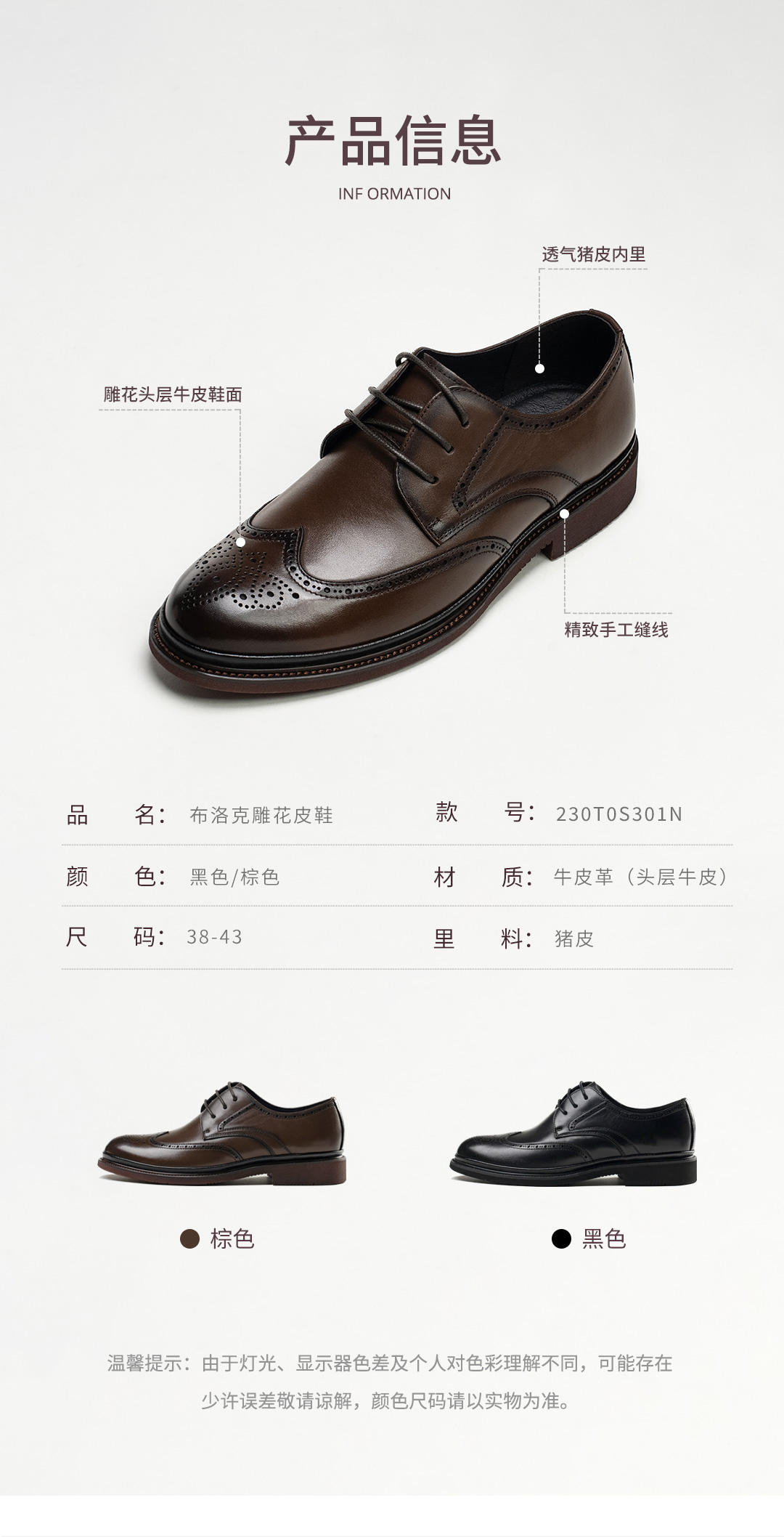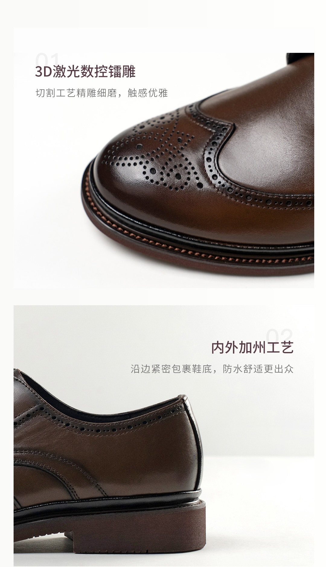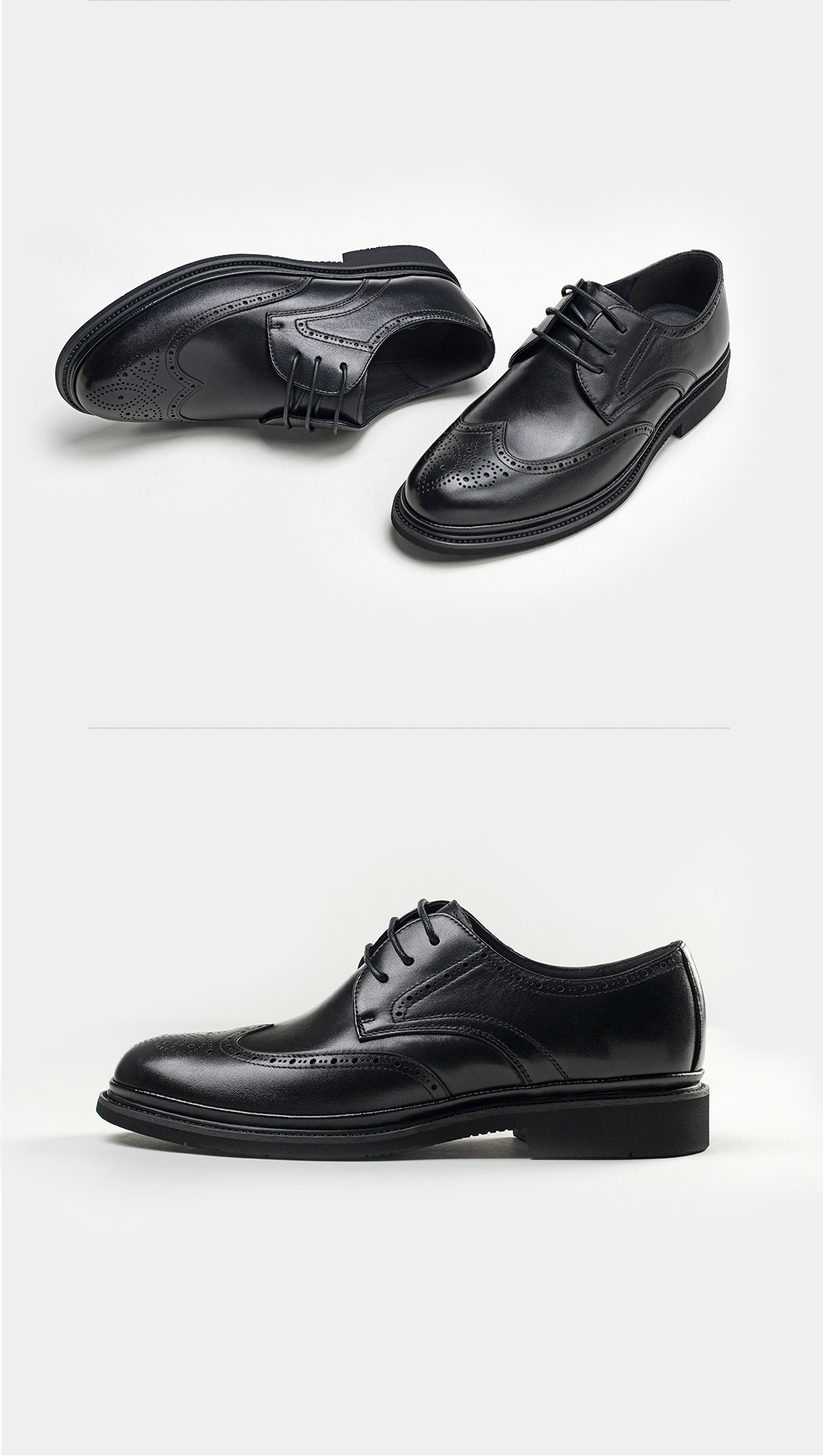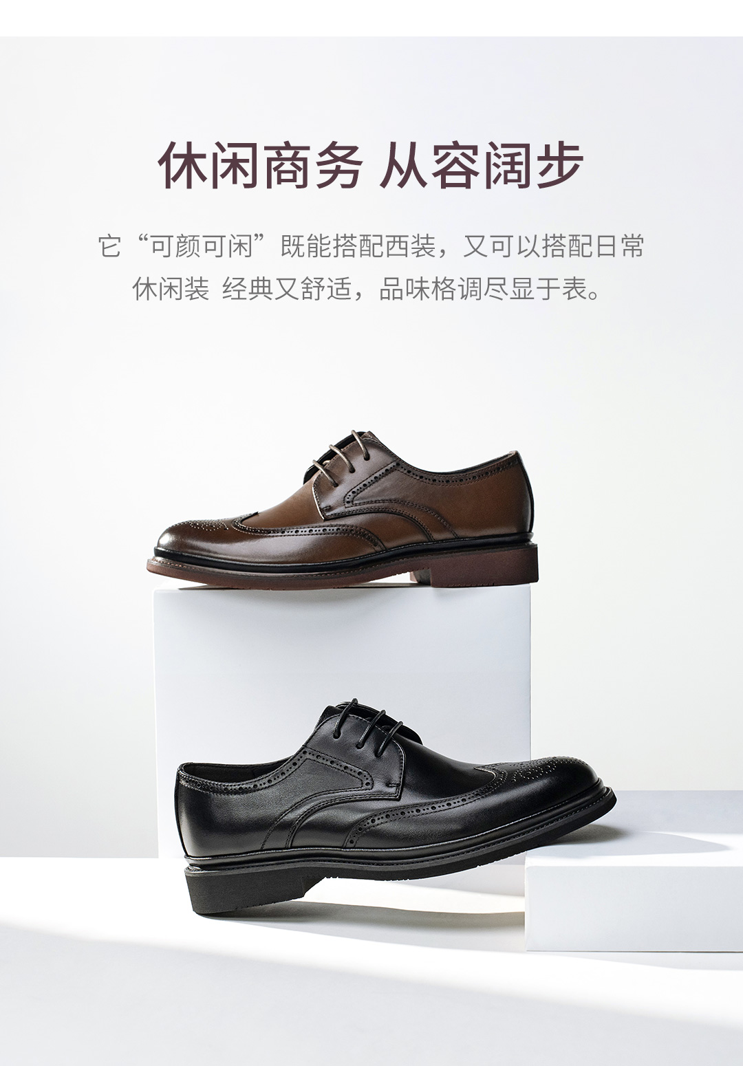 布洛克雕花系带真皮皮鞋