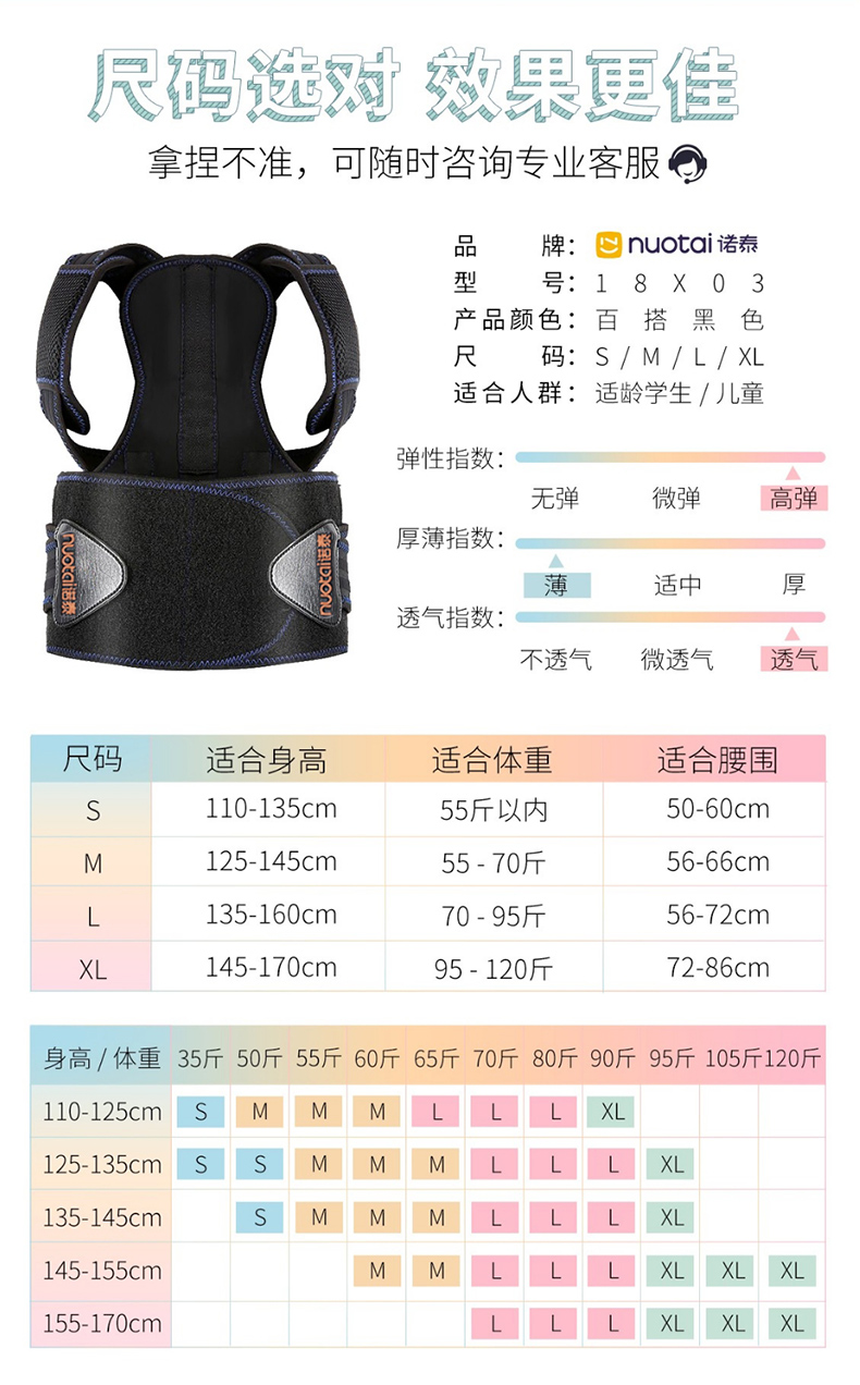 本产品适用于矫姿辅助治疗,若有严重身姿体态问题,请及时前往医院就医