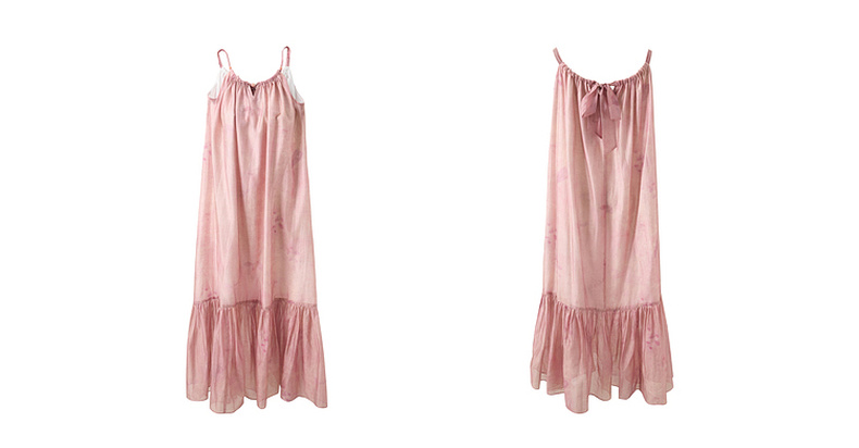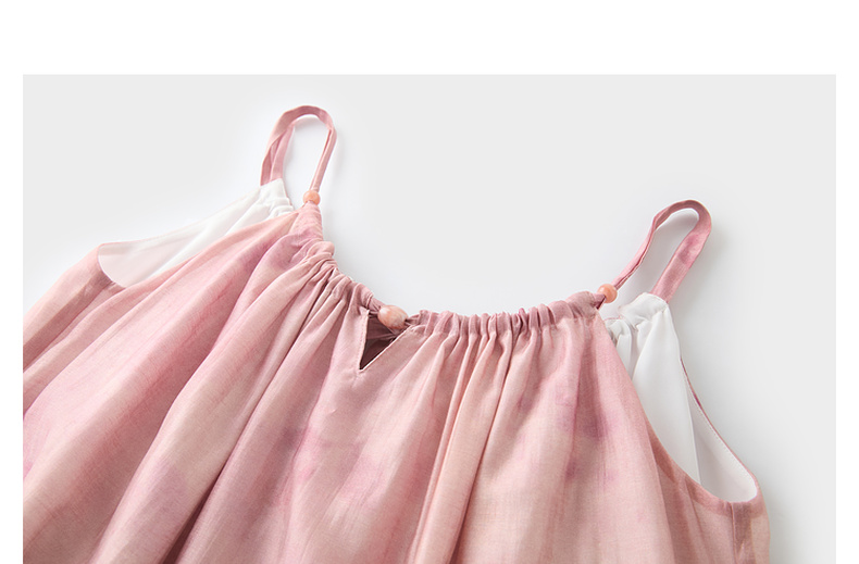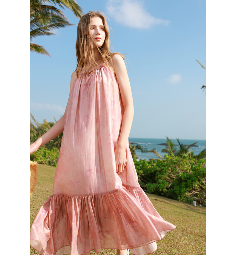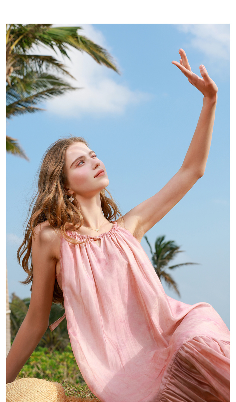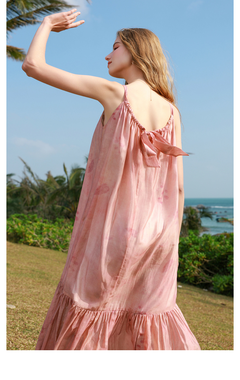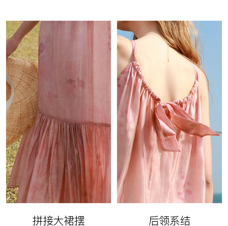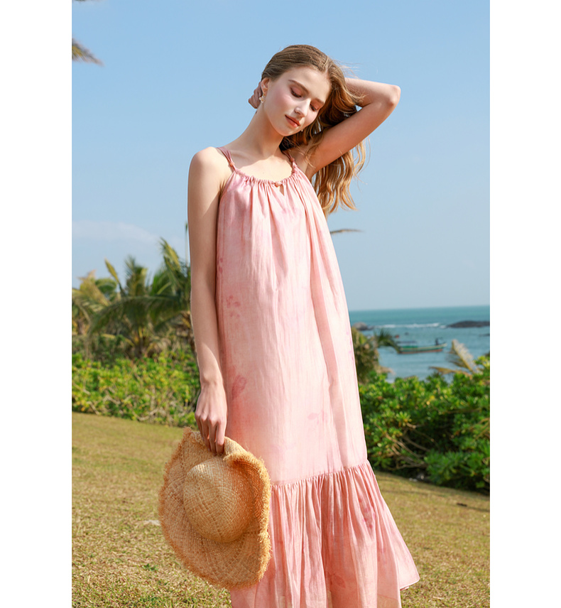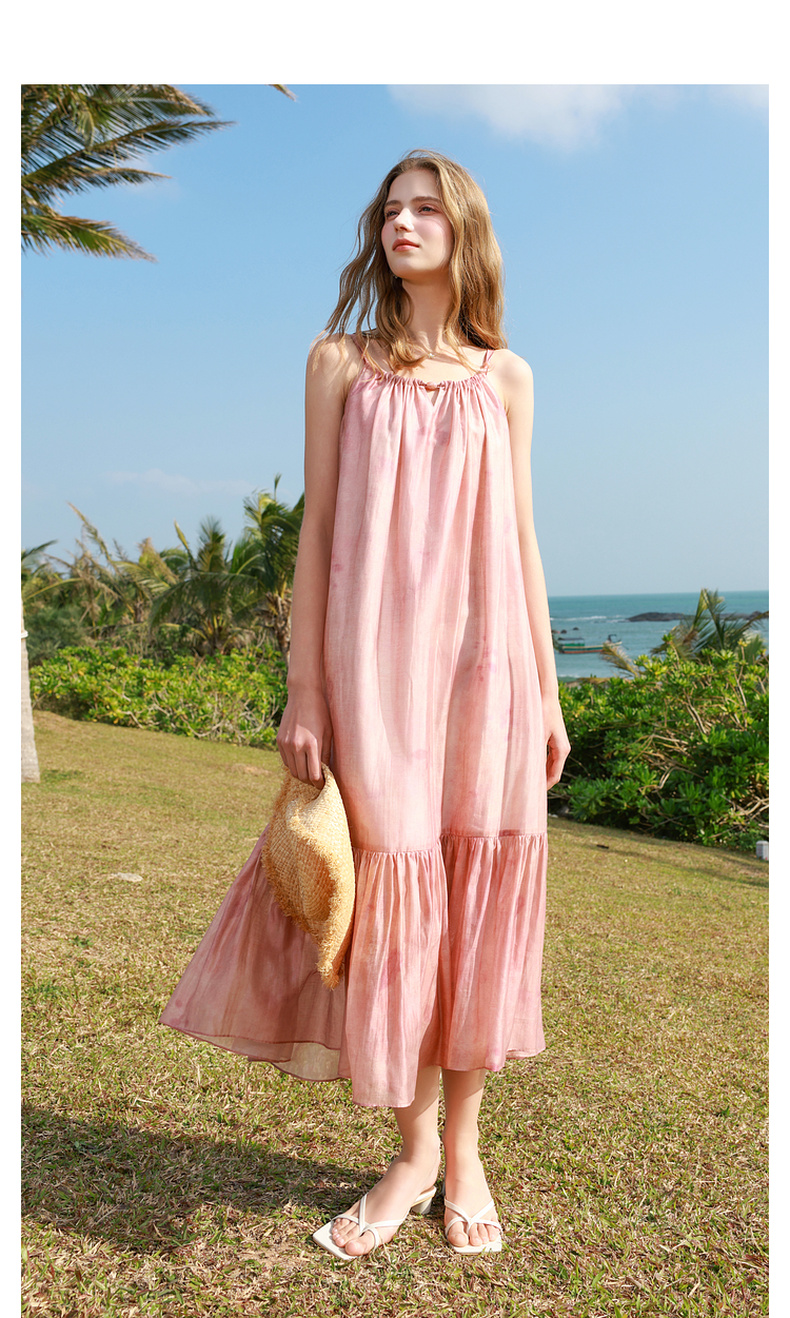 【亚麻】三彩2025春季新款樱花吊带裙无袖连衣裙宽松长裙度假M