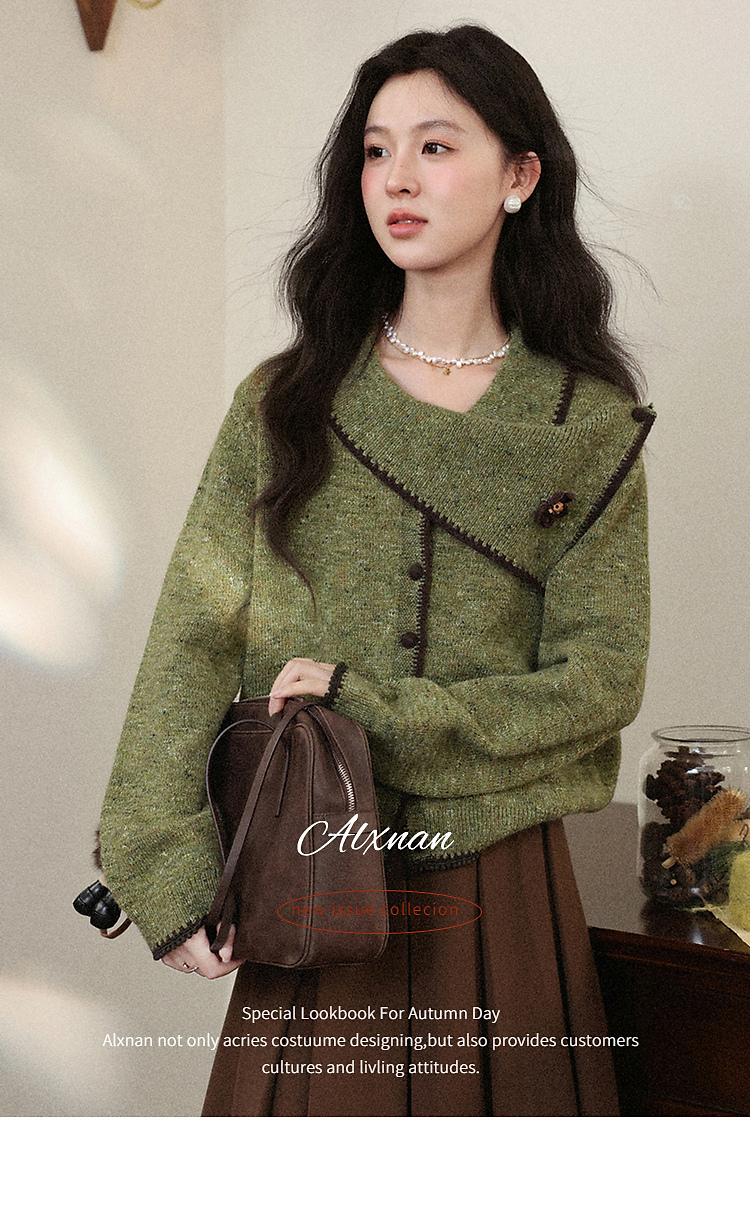 鹿向南【1220/20:00新品前1小时7折限量100件】复古绿毛衣