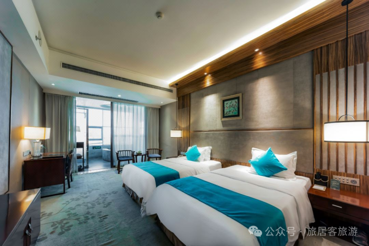 酒店为旅居客人提供温泉入户双床/大床房,楼层在 2 - 5 层,配备电梯 。房间面积 41 平方米,内有 2 张 1.2 米单人床 。设施完备,泡池温泉入户,还有书桌椅,洗手间干湿分离,提供 24 小时热水与免费 WIFI 。
